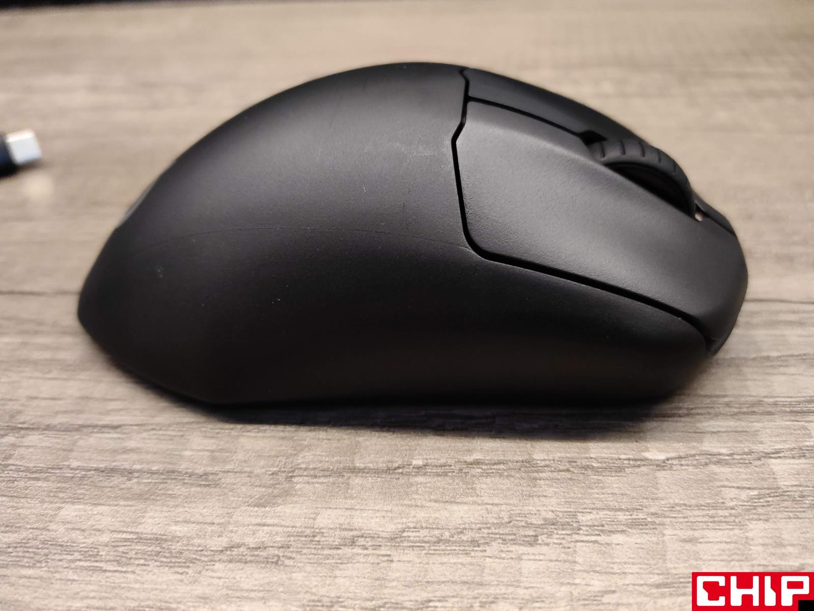 Bryła tej myszki została specjalnie zaprojektowana z myślą o kształcie dłoni, dlatego lewy bok Prime Wireless jest znacznie wyżej od tego prawego, co w połączeniu ze świetnym w dotyku matowym plastikiem na całej obudowie, zapewnia pewny chwyt. Swoje trzy grosze dorzucają do tego zarówno wyprofilowane przyciski główne, jak i lewy panel boczny, gdzie kciuk czuje się, jak ryba w wodzie. Po prawej stronie z kolei palec serdeczny i mały o dziwno znajdują dla siebie wystarczająco dużo miejsca, a to wcale nie koniec ergonomicznych zalet tego modelu.