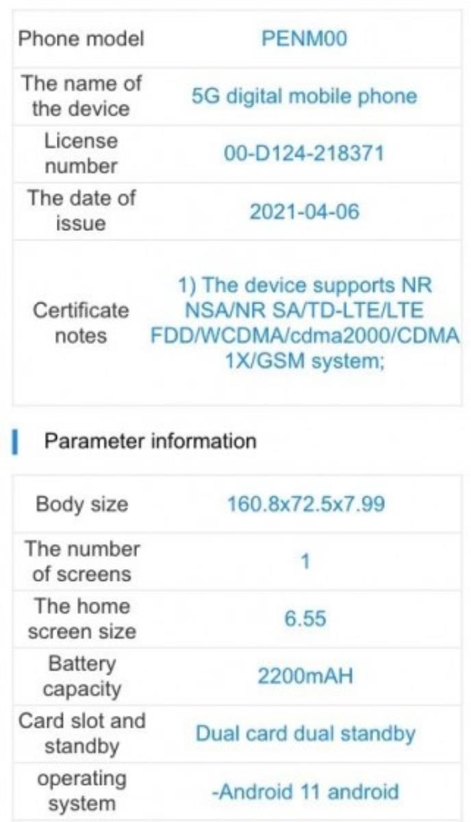Oba urządzenia są zaopatrzone w podwójną baterię o łącznej pojemności 4500 mAh oraz oferują ładowanie przewodowe o mocy 65 W. Podane w certyfikacji wymiary wskazują, że Reno6 Pro mierzy 160 × 73,1 × 7,6 mm, podczas gdy Reno6 Pro+ wynoszą 160,8 x 72,5 x 7,99 mm. Dodatkowo oczekuje się, że napędzający te smartfony system Android 11 otrzyma nakładkę graficzną ColorOS 11.1, a nawet ColorOS 11.2.