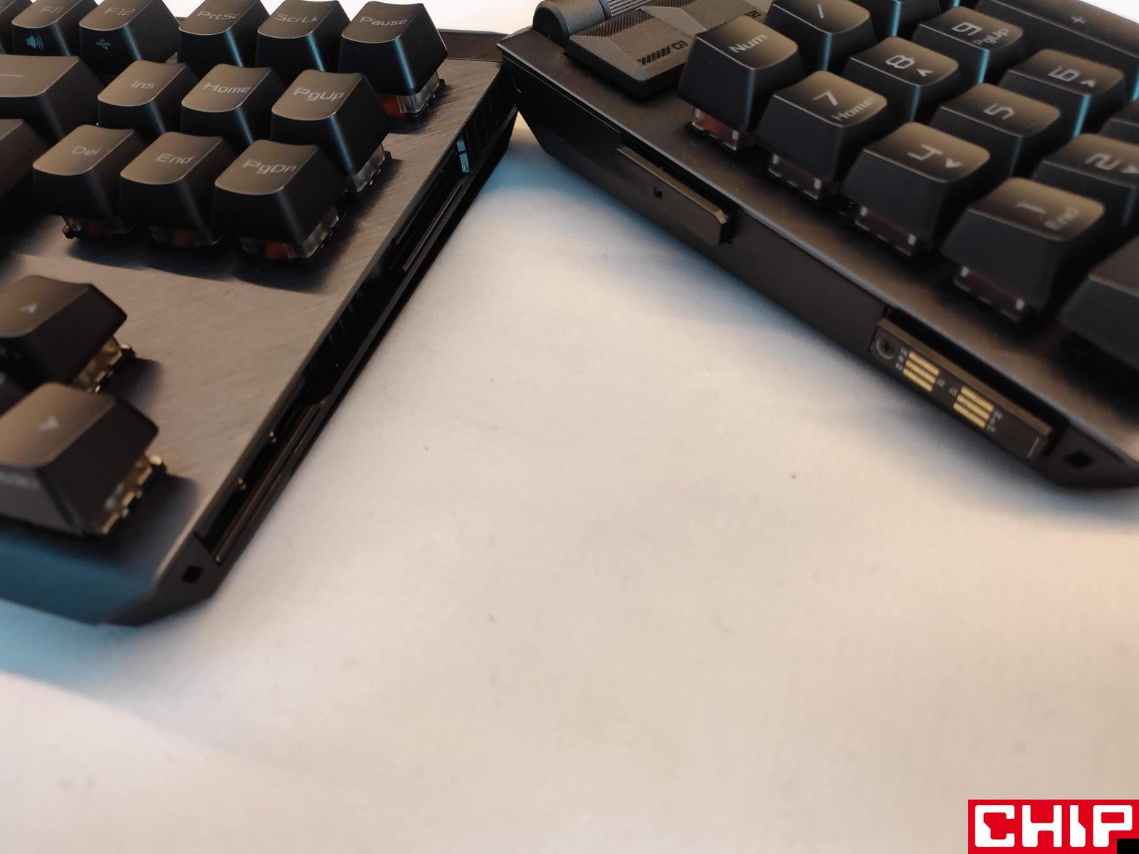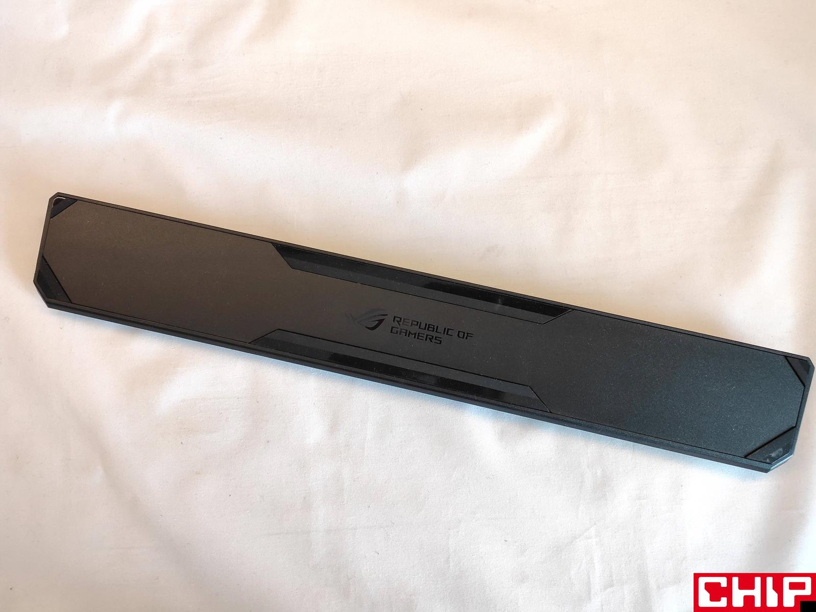 Cały zestaw ROG Claymore II dopełnia nieco zbyt krótka, ale przynajmniej świetnie wyglądająca i wykonana podkładka pod nadgarstki. Szczerze? Warto na swoim biurku ugościć wszystkie te elementy albo tylko samą klawiaturę, bo połączenie między dodatkowym i głównym modułem nie jest specjalnie solidne, co przejawia się wyginaniem na łączeniu przy użyciu nawet delikatnej siły. Podkładka nieco temu zapobiega, ale i tak ASUS powinien poprawić ROG Claymore II pod kątem właśnie tego mechanizmu łączenia oraz zaślepek na niego.