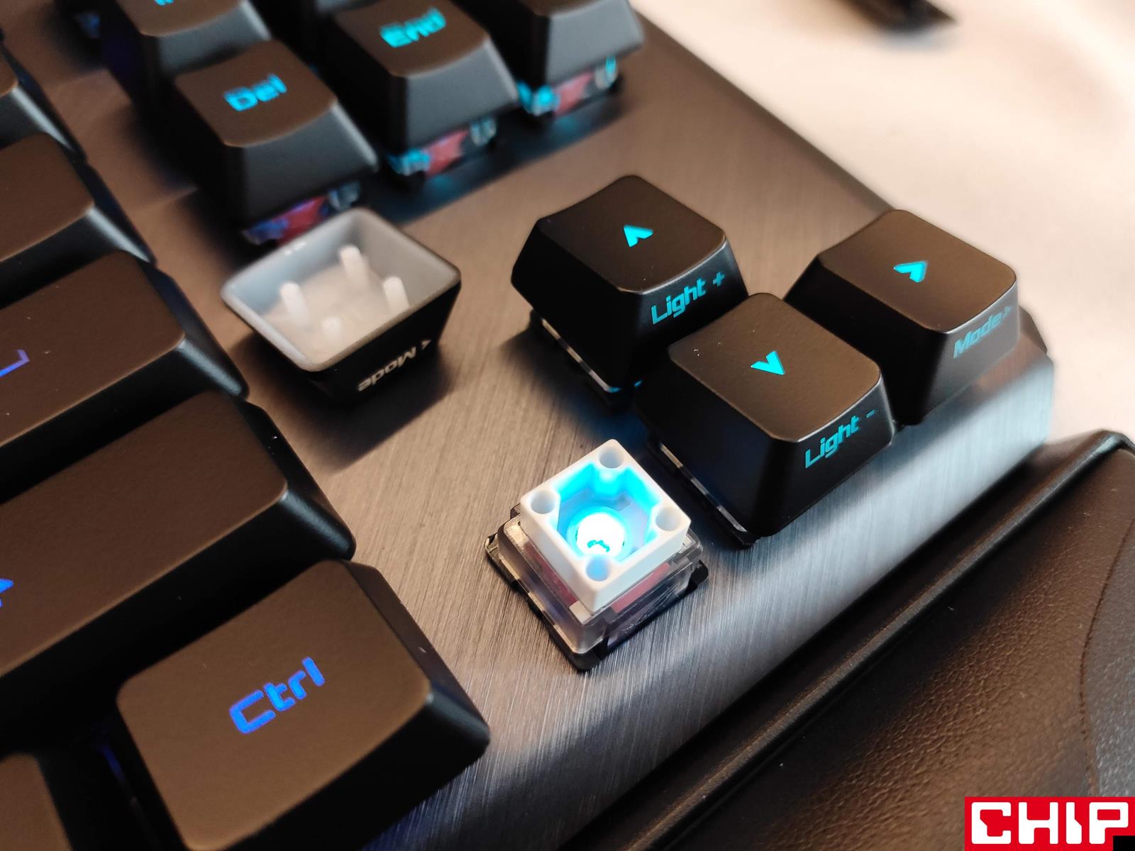 Po jego wciśnięciu, sygnał trafia do komputera za sprawą rozwiązania optycznego, co nie tylko gwarantuje wysoką żywotność klawiszy (do 100 mln aktywacji), ale też brak utleniających się styków metalicznych i zauważalnie wyższą responsywność, spójność oraz swoistą miękkość klikania. Przynajmniej w wersji RX Red, bo Claymore II możecie też kupić z niebieskimi RX Blue.