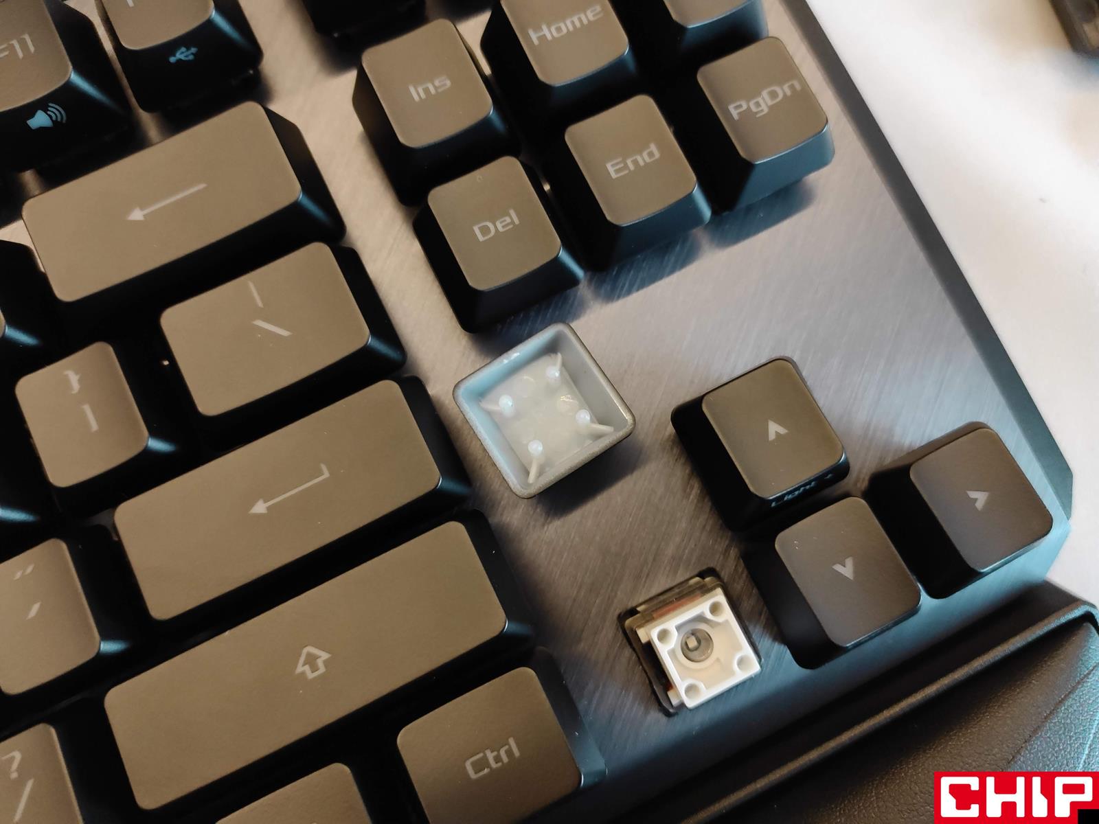 We flagowej, wyjątkowej klawiaturze nie powinno zabraknąć świetnych przełączników i tu proszę, takie właśnie znalazły się w ROG Claymore II. Mowa o mechanicznych przełącznikach optycznych, w których ASUS odmienił konstrukcję tłoczka i klawisza, stawiając na nietypowy mechanizm “nożycowy”.