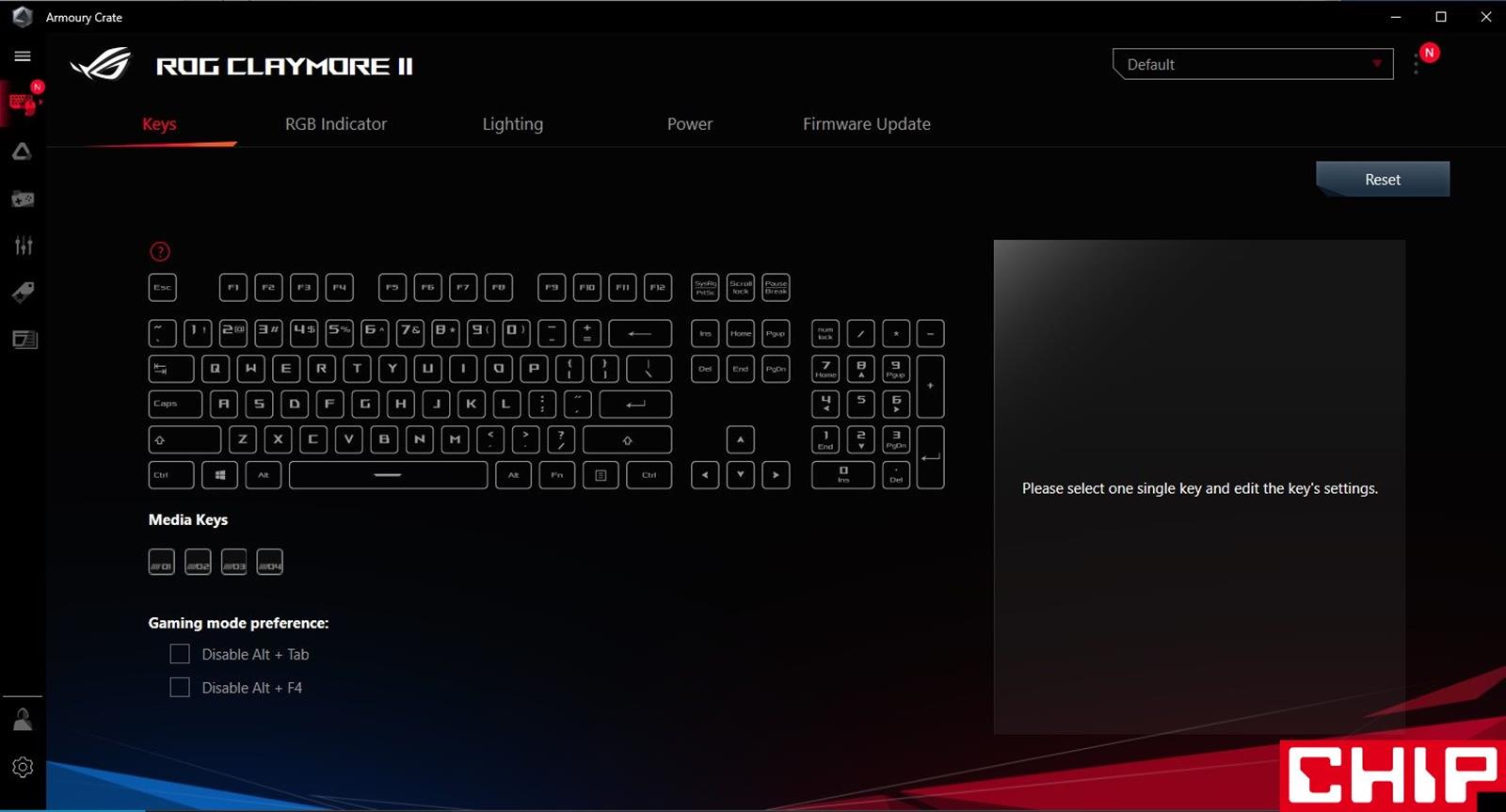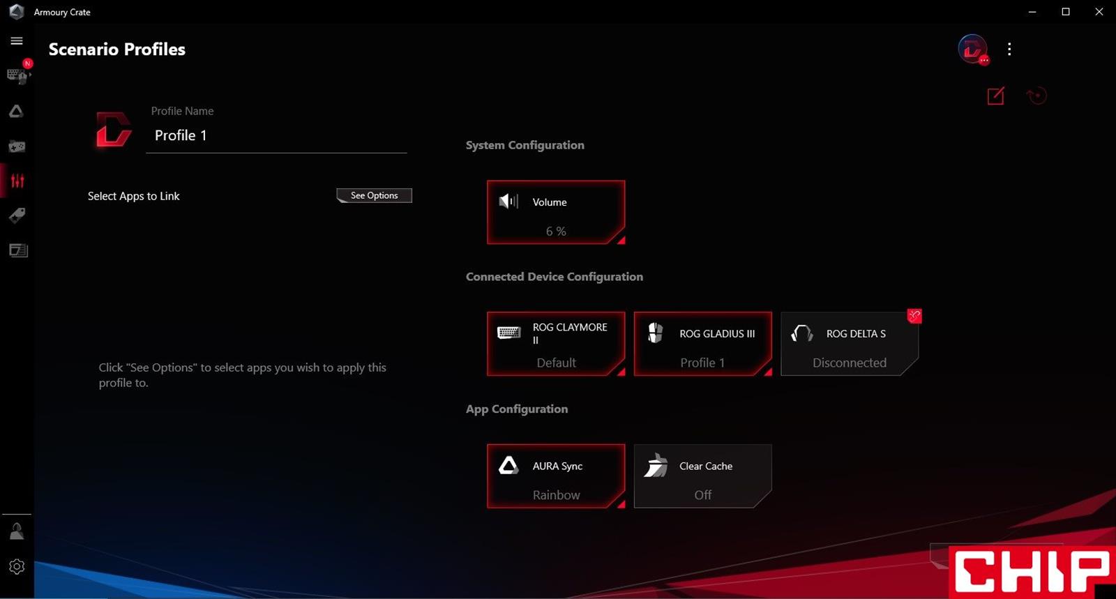 Na szczęście w przypadku ROG Claymore II Armoury Crate ze mną współpracowało i pozwoliło ustawić wszystko to, co najważniejsze. Warto zaznaczyć, że ta rozbudowana aplikacja pozwoli Wam na pobranie najnowszych aktualizacji, czy ustawicie do pięciu profili zapisanych w pamięci masowej klawiatury i podpiętych do konkretnych aplikacji.