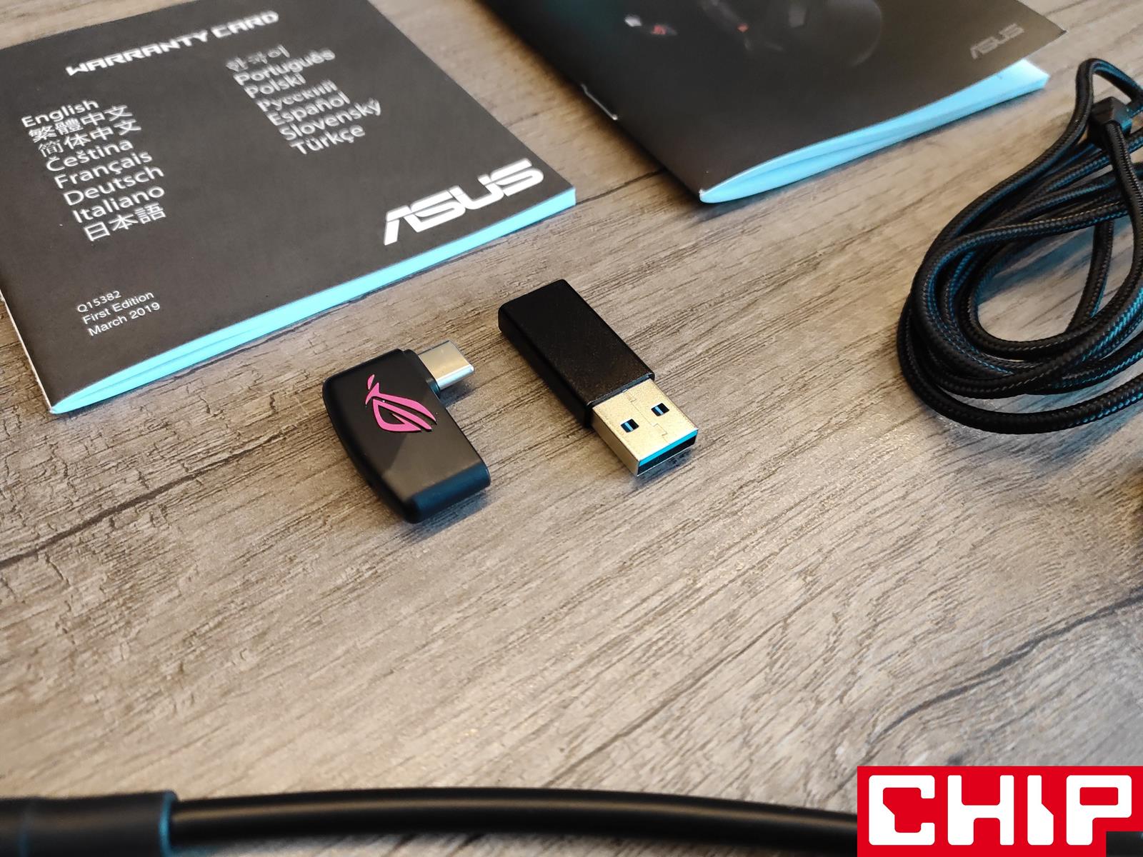 Wyposażenie jest więc bogate i nowoczesne, co w połączeniu zapewnia kompatybilność praktycznie z każdym racjonalnym sprzętem, dzięki obsługiwaniu przez ROG Strix Go 2.4 Electro Punk zarówno przewodowej, jak i bezprzewodowej łączności. Chociaż w tej mieszance trudno doszukać się wad, to nieco naciąganym minusem może być sama konstrukcja odbiornika.
