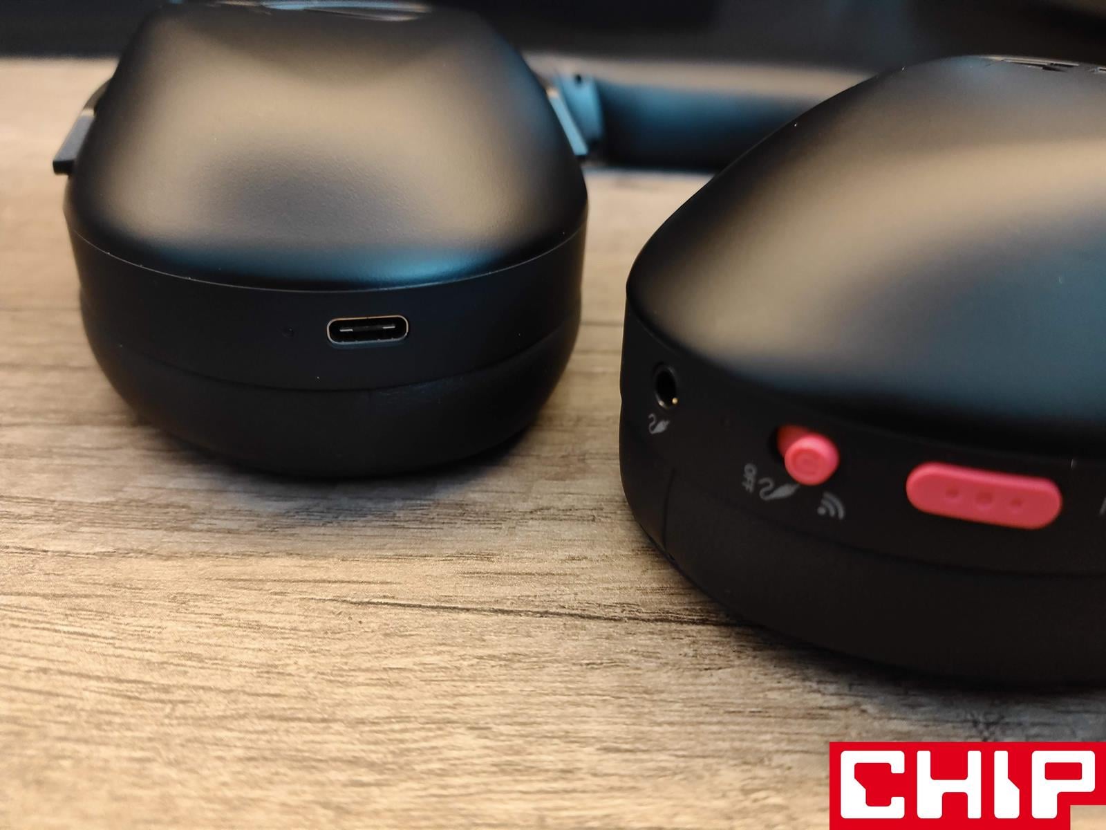 Co ciekawe, w tym modelu Asus postarał się zarówno o niewidoczny, bo sprowadzający się do widocznej małej dziurki na dole lewej muszli mikrofon, jak również ten dedykowany, odpinany. Pierwszy jest dookólny o czułości -45 dB, a drugi dwukierunkowy już o czułości -54 dB. Dodatkowo mikrofony wspomaga algorytm na bazie sztucznej inteligencji, który to ma za zadanie tłumić dźwięki z otoczenia.