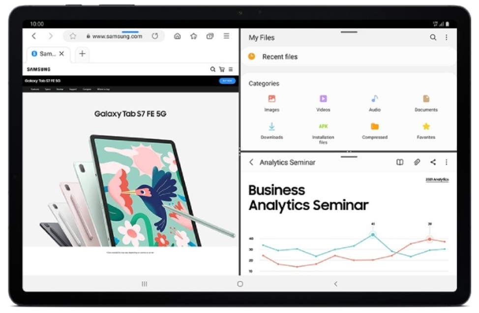 Tablet ten jest zasilany przez układ Qualcomm Snapdragon 750G współpracujący zależnie od wersji z 4/6 GB pamięci RAM i 64/128 GB pamięci masowej, którą można rozszerzyć za pomocą karty micro SD do 1 TB. Do tego mamy baterię o pojemności 10090 mAh z obsługą szybkiego ładowania o mocy 45 W. Jednak już na własną rękę będziemy musieli dokupić adapter, ponieważ w zestawie dostaniemy tylko ładowarkę o mocy 15 W. Całość pracuje pod kontrolą Androida 11 wraz z nakładką graficzną One UI 3.1.