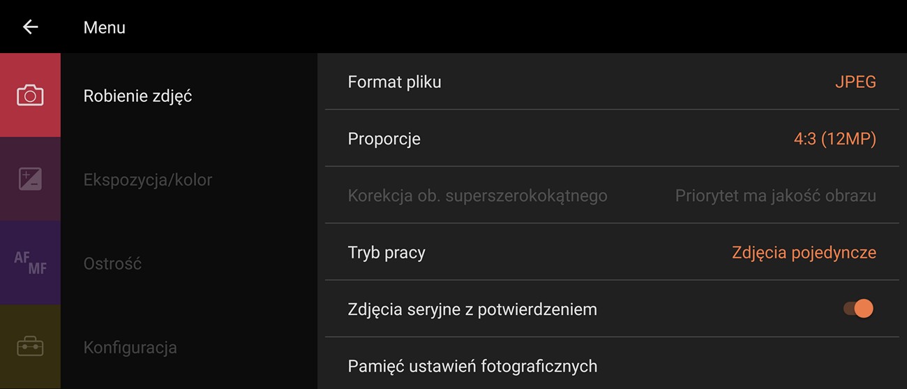 Do naszej dyspozycji została oddana jednak jeszcze profesjonalna aplikacji Photo Pro, w której możemy manualnie decydować o praktycznie każdym aspekcie wykonywanego ujęcia, co możecie zobaczyć na poniższych screenach. Tu duże brawa dla Sony – to nadal nie jest standard nawet w najnowszych, flagowych smartfonach. No i możemy zapisywać zdjęcia w formacie RAW.