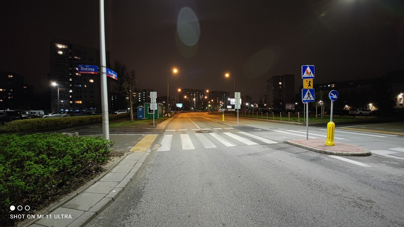 Za dnia jakość zdjęć z aparatu głównego jest zgodna z oczekiwaniami, czyli świetna. Rozpiętość tonalna bardzo dobra, a ilość szczegółów – nader wysoka, co widać zwłaszcza powiększając zdjęcia. Oczywiście włączając tryb AI, barwy zostają podbite, co nie każdemu może się podobać (ale większości będzie). Obiektyw szerokokątny również spisuje się świetnie i ma większy kąt widzenia, bo aż 128°. Oczywiście ilość szczegółów jest mniejsza, niż w przypadku aparatu głównego, ale nie o tyle ile w konkurencyjnych smartfonach (głównie dzięki dużej rozdzielczości matrycy). Ponadto możemy liczyć na pięciokrotny zoom optyczny lub dziesięciokrotny hybrydowy, dzięki oddzielnemu, dedykowanemu aparatowi z optyczną stabilizacją obrazu. Tego brakowało z kolei w tańszym wariancie Mi 11. Efekty jego pracy są w pełni zadowalające i naprawdę nie ma do czego się przyczepić. Szczegółów jest naprawdę dużo!