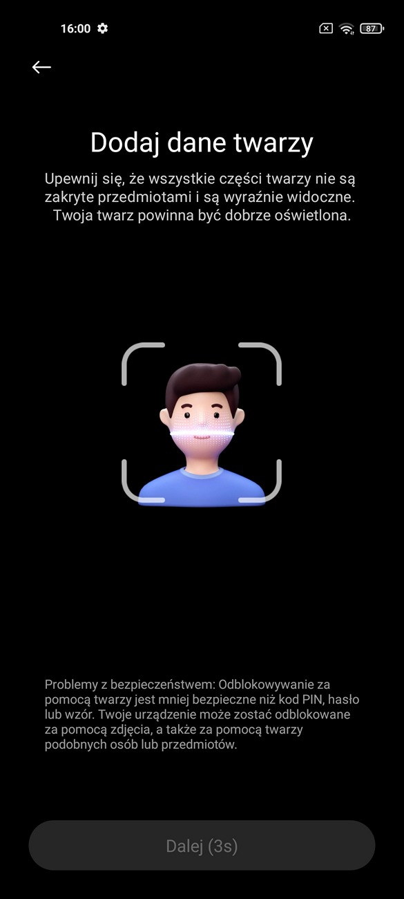 Czytnik linii papilarnych został umieszczony pod ekranem. Jest on szybki i celny (średnio 9 na 10 prób było udanych za pierwszym razem). Żeby go uaktywnić trzeba jednak wziąć telefon do ręki lub puknąć w ekran. Z kolei odblokowanie za pomocą twarzy jest szybsze i równie celene jak to za pomocą skanu linii papilarnych. Jeśli nie będziemy korzystać wtedy z urządzenia w absolutnych ciemnościach rzecz jasna. Smartfon nie dał się oszukać na zdjęcie mojej twarzy i w dodatku nie odblokuje telefonu przy zamkniętych oczach. To zdecydowanie na plus, choć zdziwiłbym się, gdyby było inaczej.