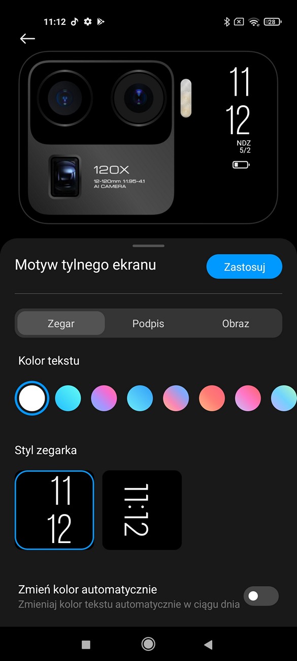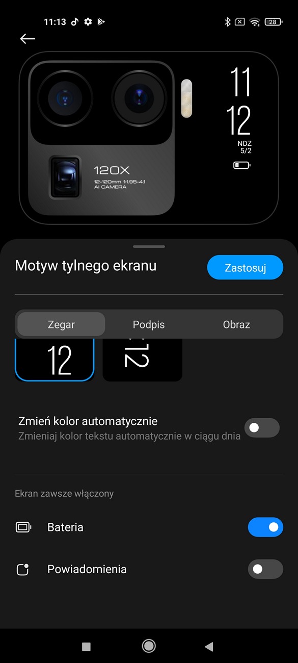 Smartfon działa oczywiście na systemie Android 11 wraz z nakładką producenta – MIUI Global 12. Całość wygląda więc identycznie jak w tańszym Mi 11. Nakładka jest przejrzysta, czytelna i oczywiście działa ultra płynnie. Zwłaszcza przy włączonych 120 Hz. Jest obsługa Always on Display, motywów oraz gestów ekranowych. Oczywiście, dostępne są również usługi Google. Bardzo przydatna jest również możliwość wybudzenia urządzenia dwuklikiem albo poprzez podniesienie je do góry. Dwuklikiem wybudzić możemy również mały wyświetlacz przy aparacie, a dodatkowo w ustawieniach możemy zmienić styl wyświetlanych informacji!
