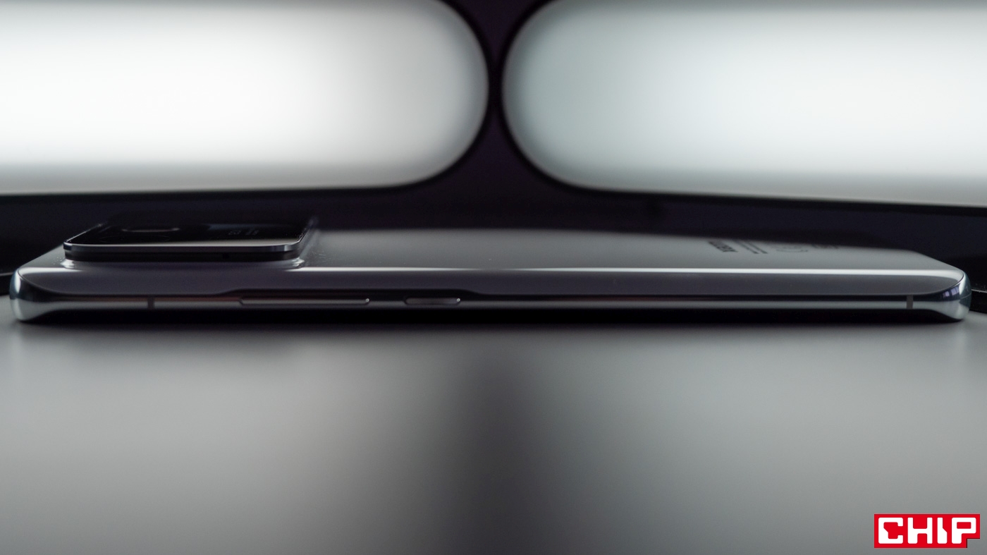 Od razu ostrzeżenie – smartfon nie jest lekki (234 gramy), co czuć w dłoni. Jest cięższy nawet od Samsung S21 Ultra. Niektórym to może przeszkadzać, choć mi jakoś specjalnie nie wadziło. Natomiast ostrzeżenie nr dwa – trzeba przyzwyczaić się do chwytu urządzenia, bowiem olbrzymia „wyspa” na aparaty z tyłu smartfona trochę zawadza palcom. Na szczęście obudowa nie zbiera przesadnie odcisków palców. W tej kwestii jest dobrze. Dodatkowo, dzięki symetryczności owej wyspy, urządzenie jest stabilne po położeniu na powierzchni płaskiej. To akurat spory plus.