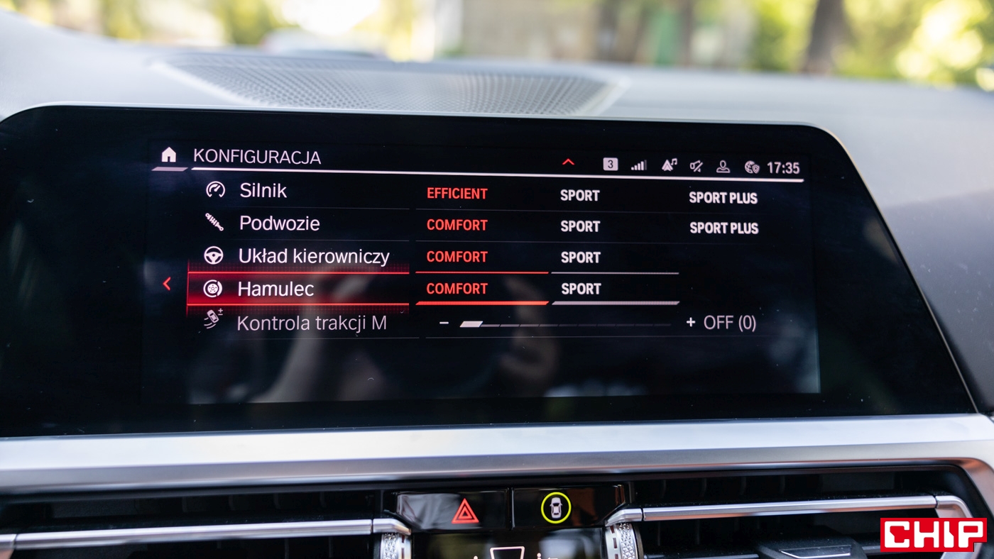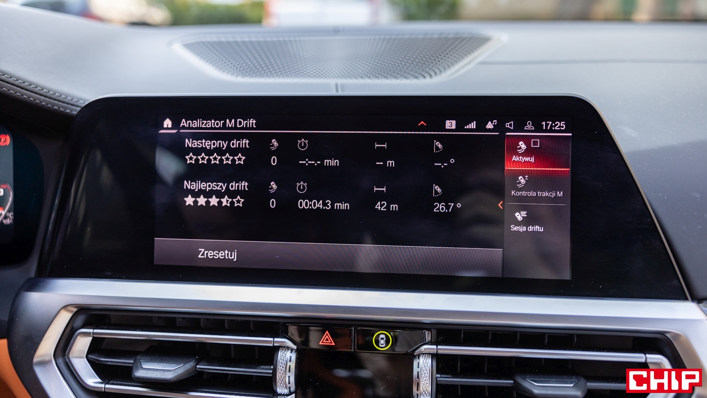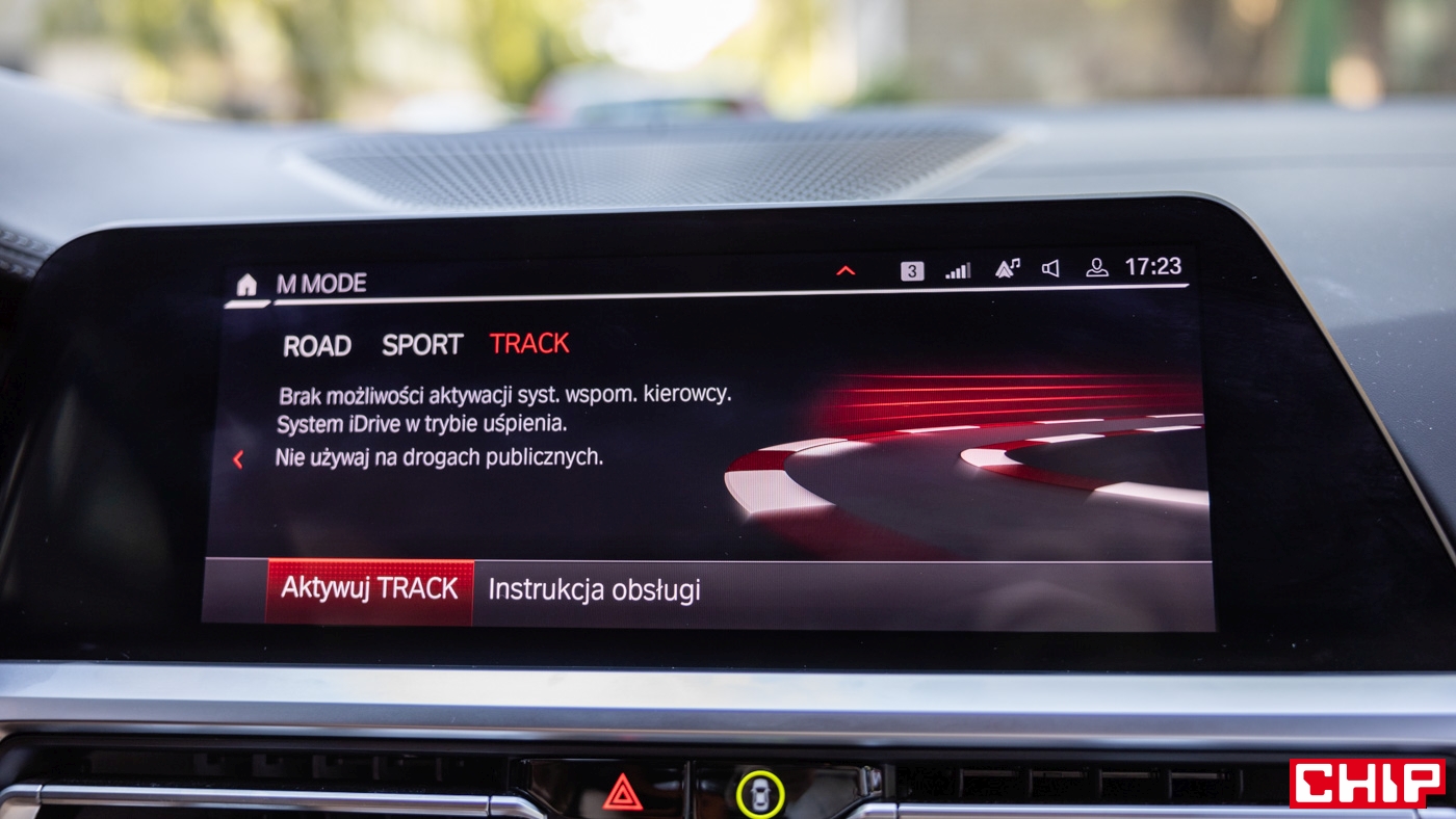 Bawarczycy wyposażyli auto w adaptacyjne zawieszenie z elektronicznie sterowanymi amortyzatorami, naszpikowane czujnikami, których zadaniem jest dostosowywanie go do warunków na drodze, a także naszego stylu prowadzenia auta. Dzięki temu oraz bardzo sztywnemu nadwoziu (rozpórki, aluminiowe elementy) BMW M3 naprawdę świetnie trzyma się drogi. No chyba, że chcemy poszaleć. Jeśli zaznajomimy się z tym autem i najdzie nas ułańska fantazja, czeka na nas tryb Track M Drive Professional. Pozwala na regulację kontroli trakcji w 10-stopniowej skali, a także elementy takie jak M Drift Analyser, który wspomaga jazdę w bocznym poślizgu czy M Laptimer mierzący czasy okrążeń. Mamy tutaj również możliwość ustawienia trybu silnika, podwozia, układu kierowniczego i hamulców, a także systemu xDrive, jeżeli jest dostępny (w testowym wariancie jeszcze tego nie było). Mamy również możliwość zapisania dwóch trybów ustawień i skorzystania z nich w dowolnym momencie, używając przycisków M na kierownicy.