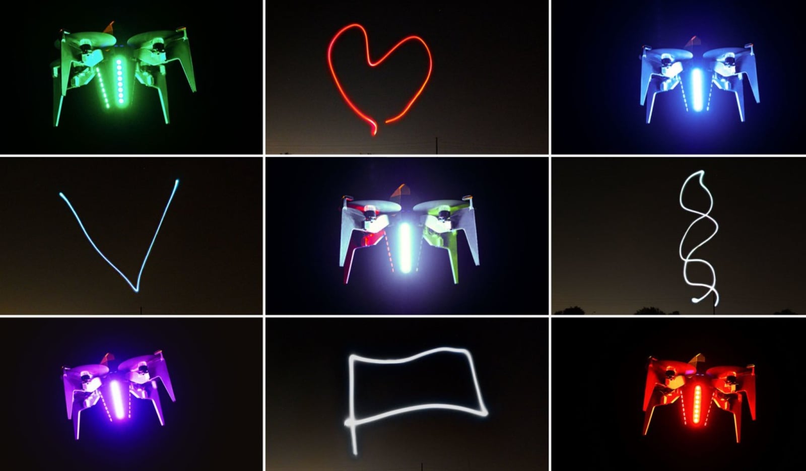W ostatnich latach drony stały się alternatywą zarówno dla fajerwerków, jak i laserów, oferując nowe podejście do realizacji pokazów świetlnych. W poprzednim produkcie firmy urządzenie zawierało przezroczysty cylindryczny korpus z kolumną diod LED, którą wystrzeliwało się w powietrze za pomocą sprężynowej katapulty. Ta świeciła w różnych kolorach i wzorach, a następnie w powietrzu wypuszczała zestaw łopat wirnika, które obracały się automatycznie, spowalniając i kontrolując jego opadanie.