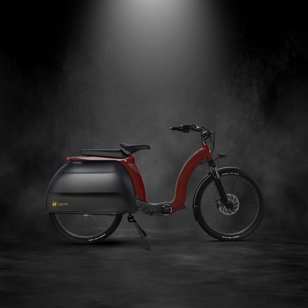 Pomijając swoje transportowe możliwości, elektryczny rower Model 1 od Civilized Cycles wyróżnia się na tyle innych modeli zaawansowanym układem napędowym. Ten bazuje na silniku między korbami o mocy 1500 W, który jest połączony z 5-biegową przekładnią Sturmey Archer w piaście tylnego koła i wspiera zarówno tryb wspomagania, jak i “mocy na zawołanie”, dzięki dźwigni przepustnicy na kierownicy. Zasileniem tego zajmuje się skromna pojedyncza 500 Wh bateria, którą można rozszerzyć o to samo dodatkowe ogniwo.