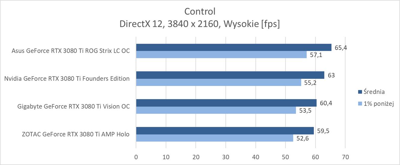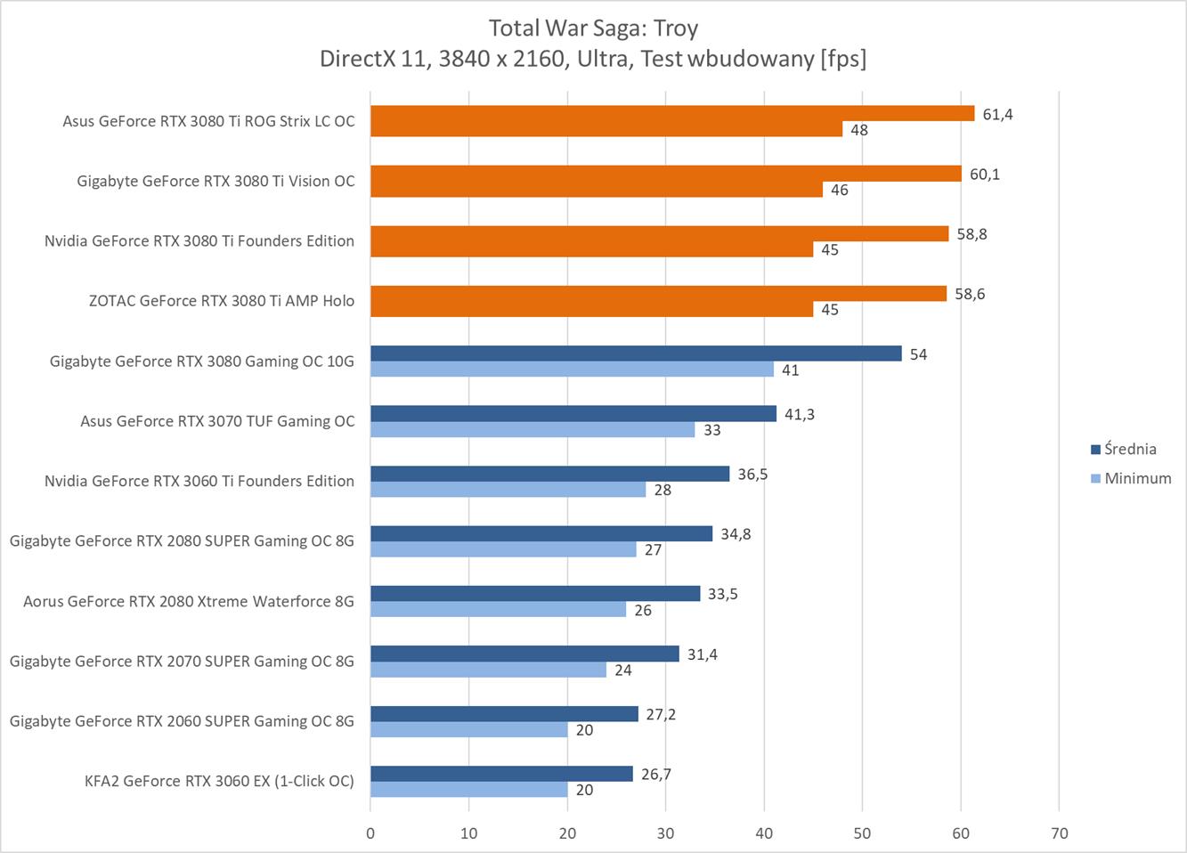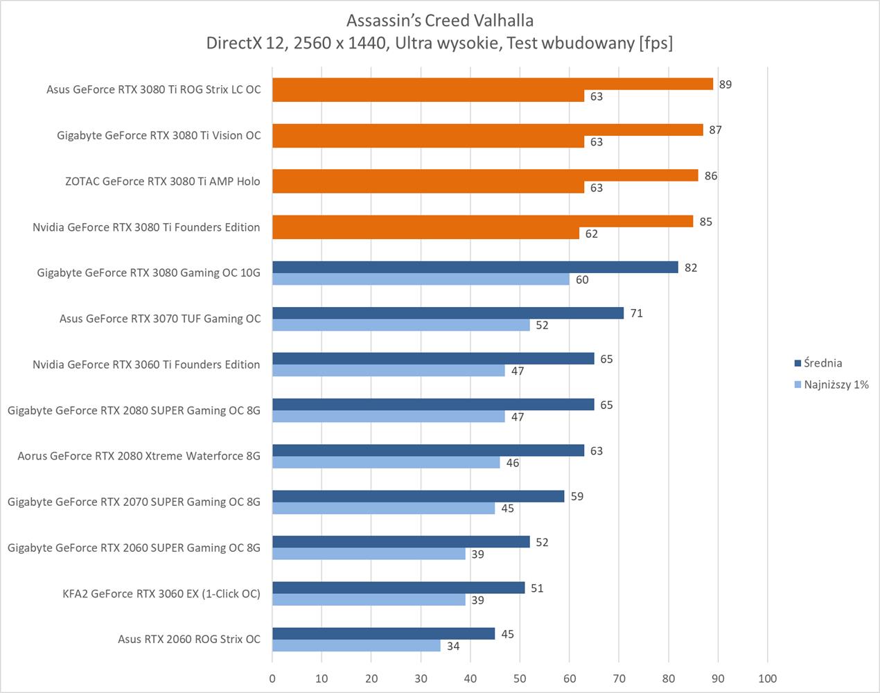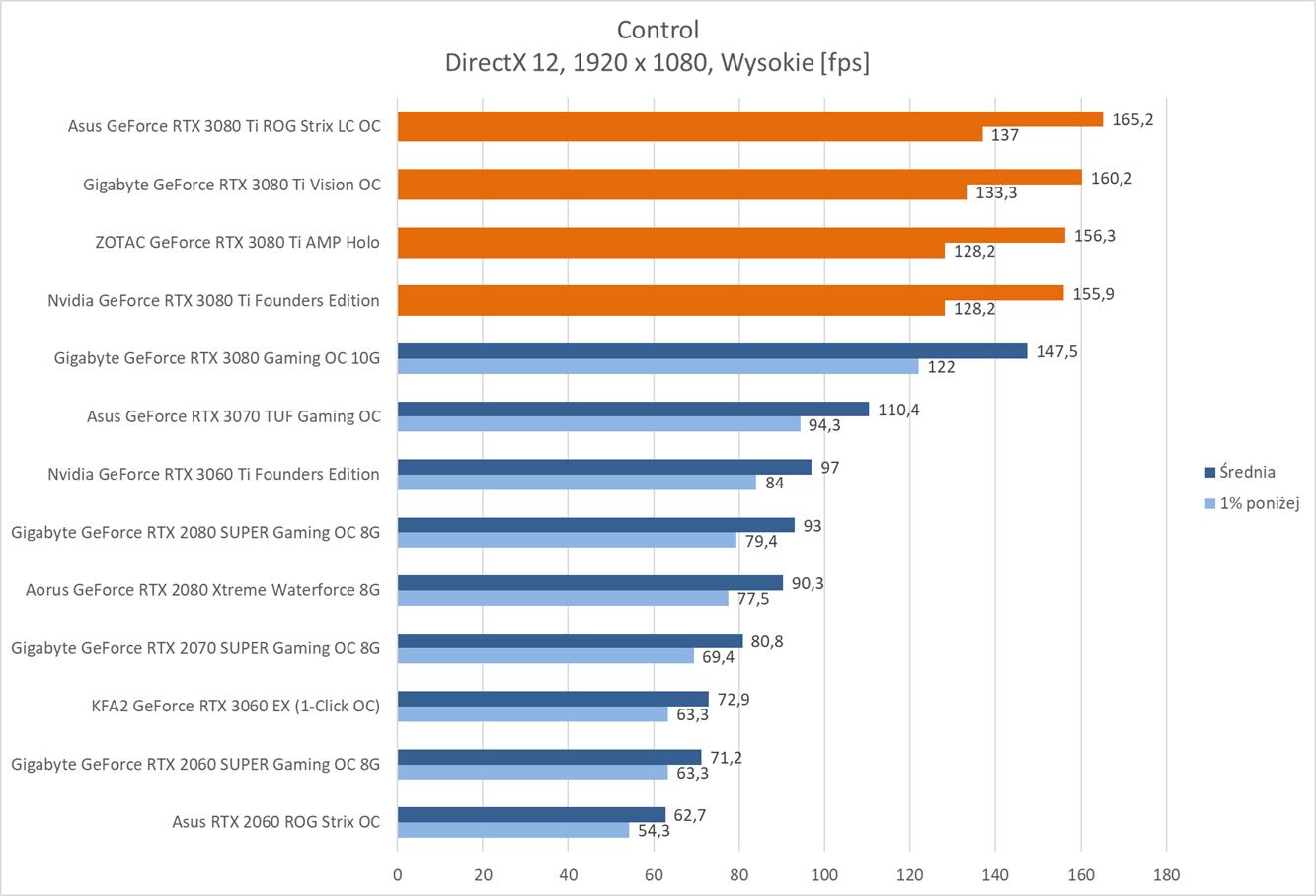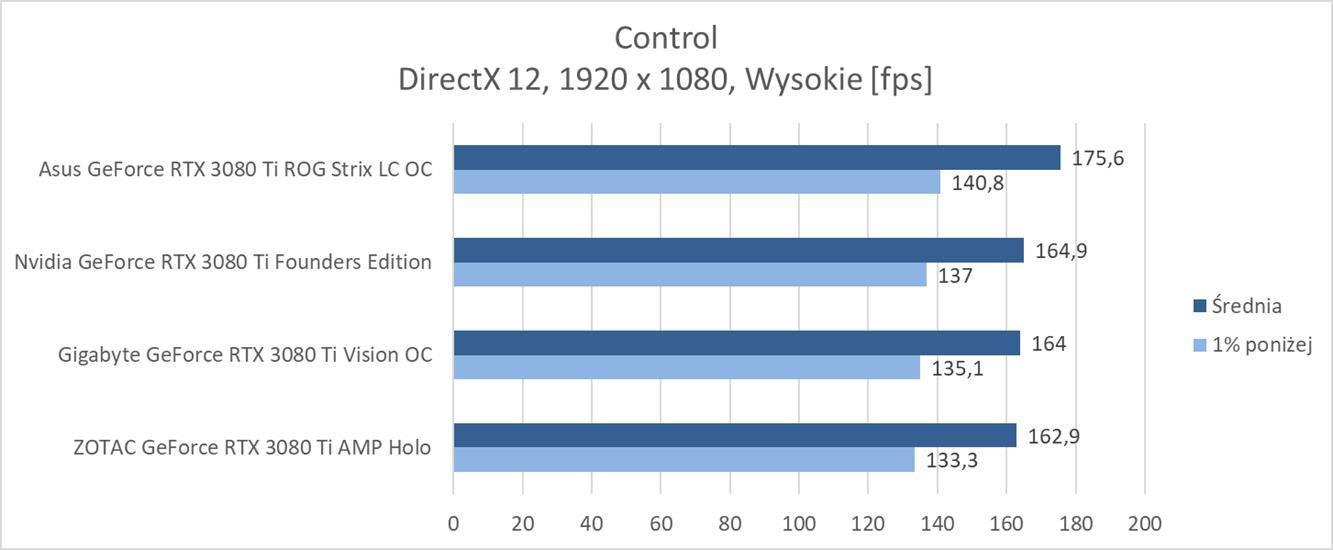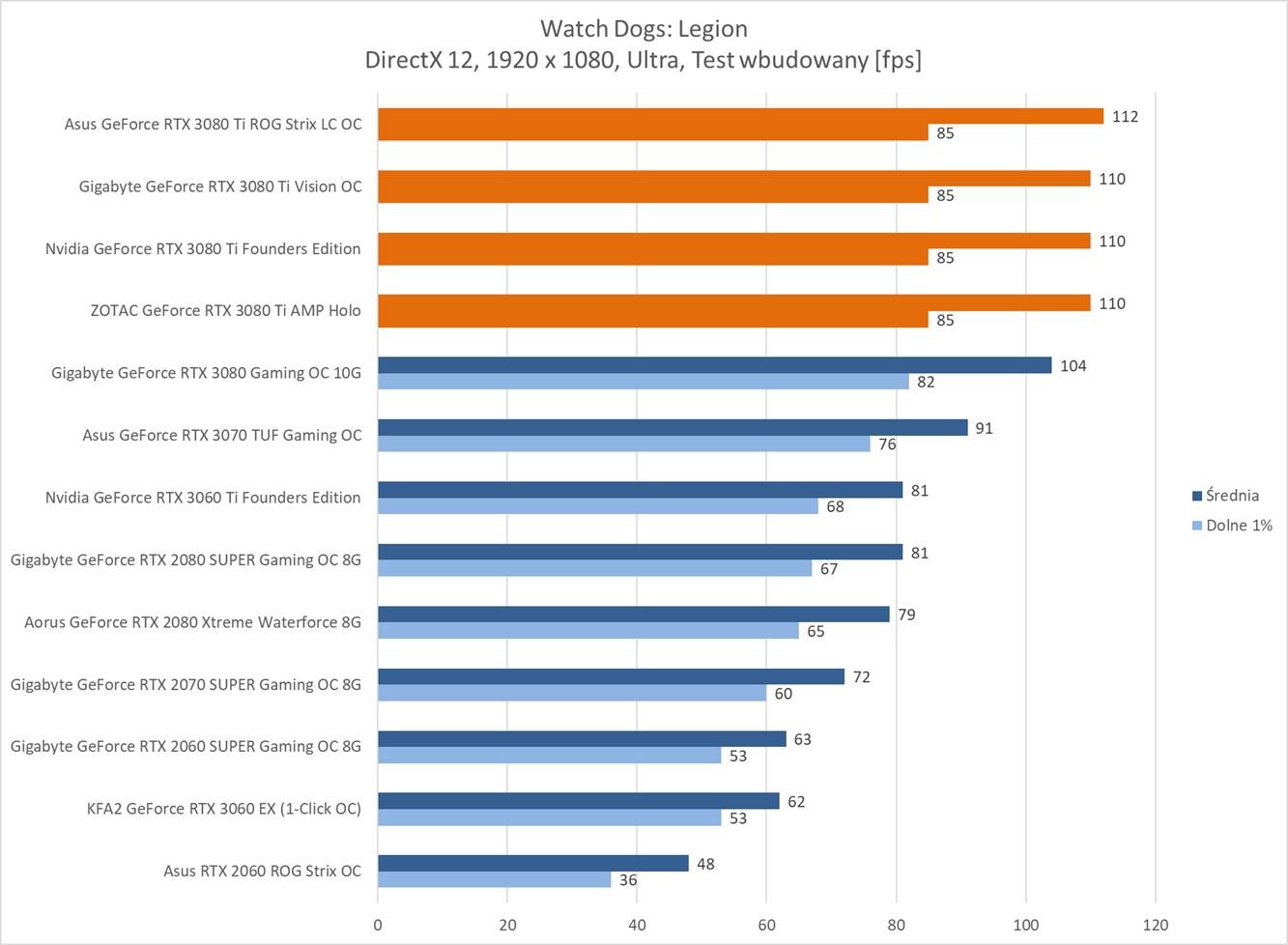 Średnia wydajność testowanych modeli GeForce RTX 3080 Ti