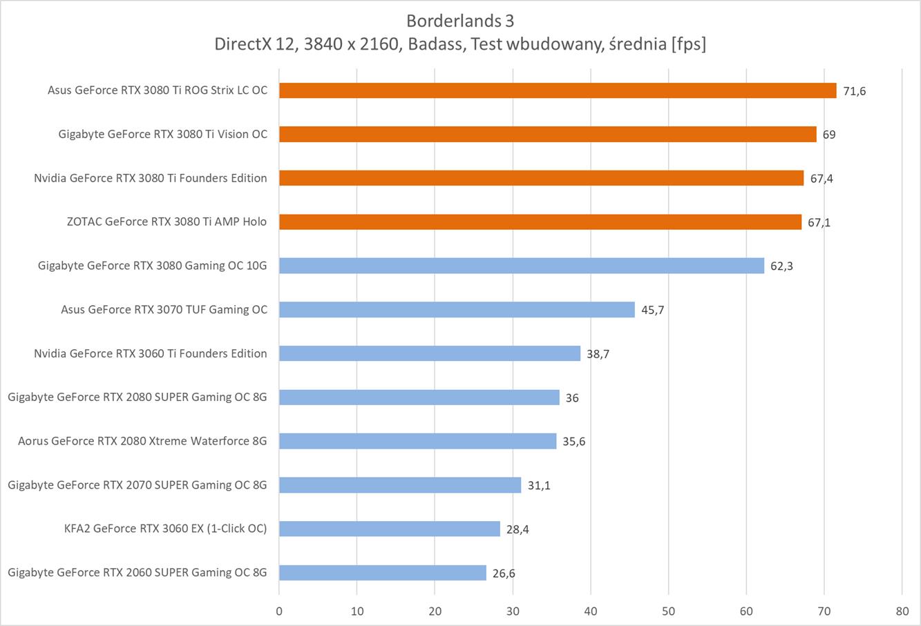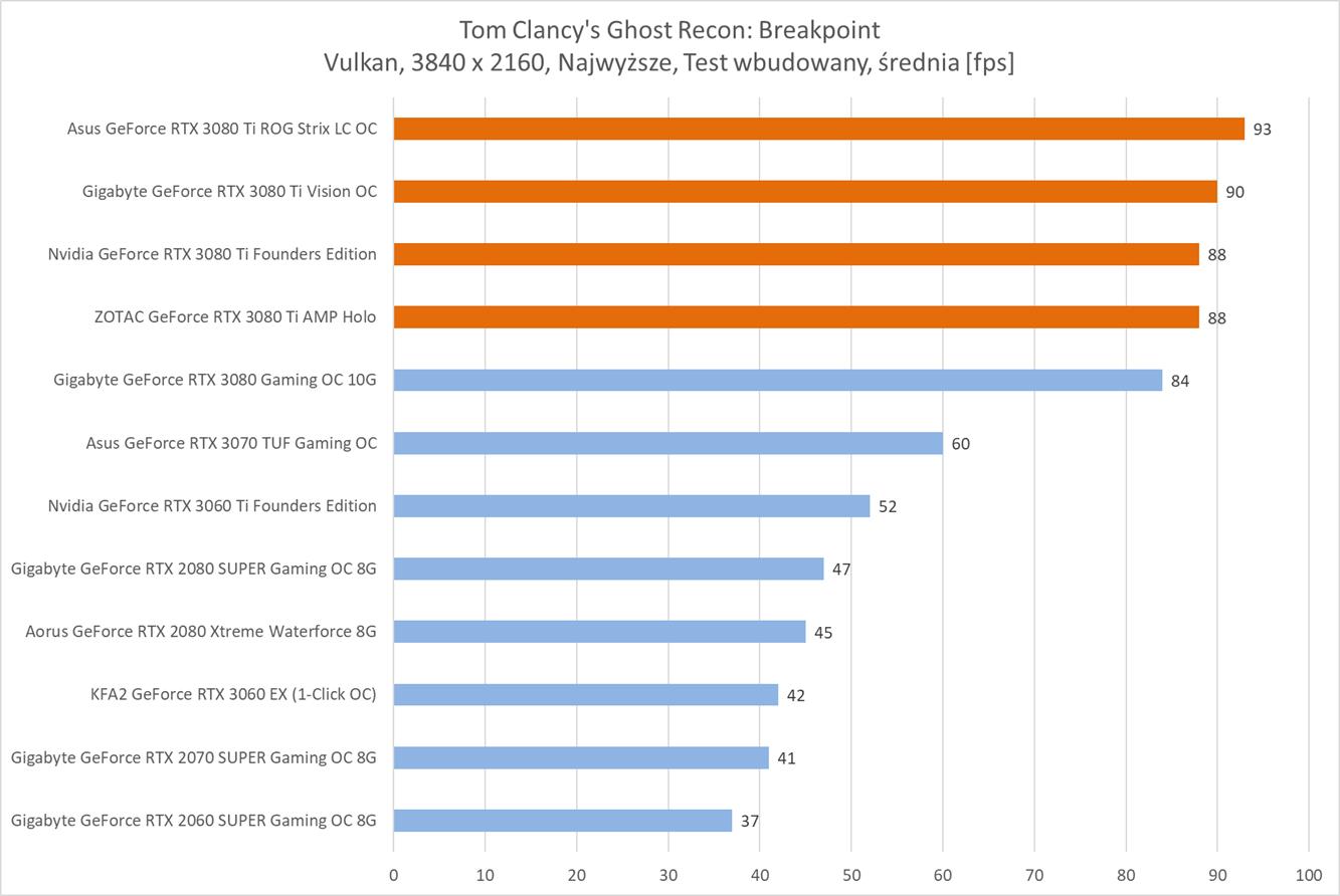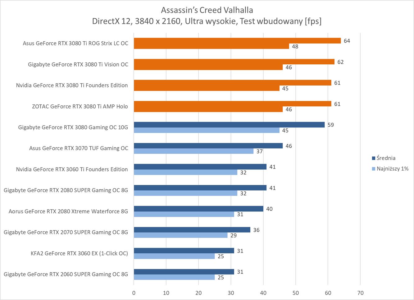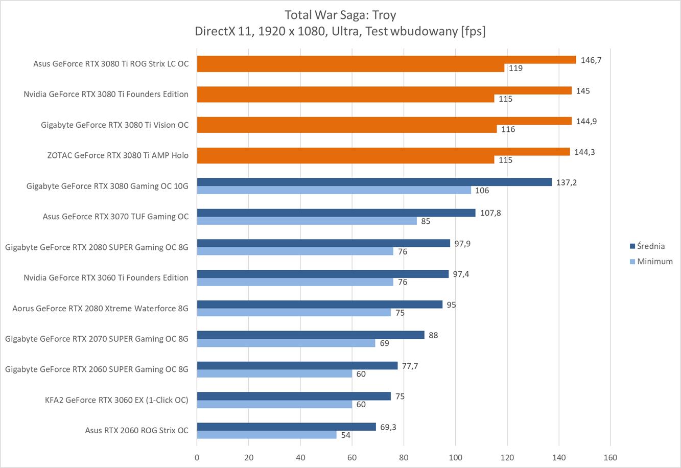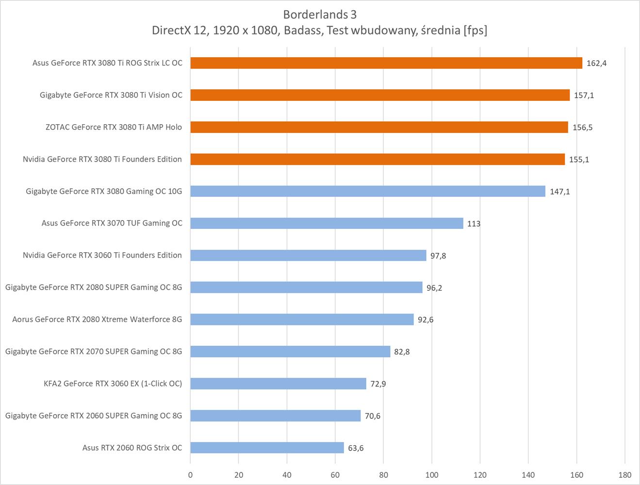 Średnia wydajność testowanych modeli GeForce RTX 3080 Ti