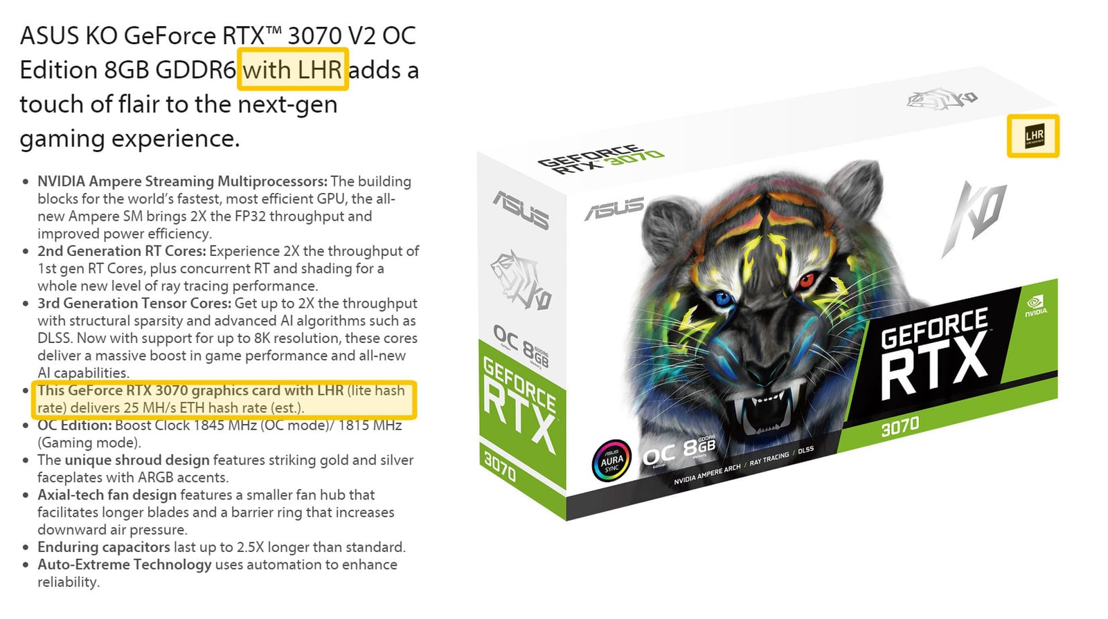- ASUS RTX 3070 LHR 8GB KO V2