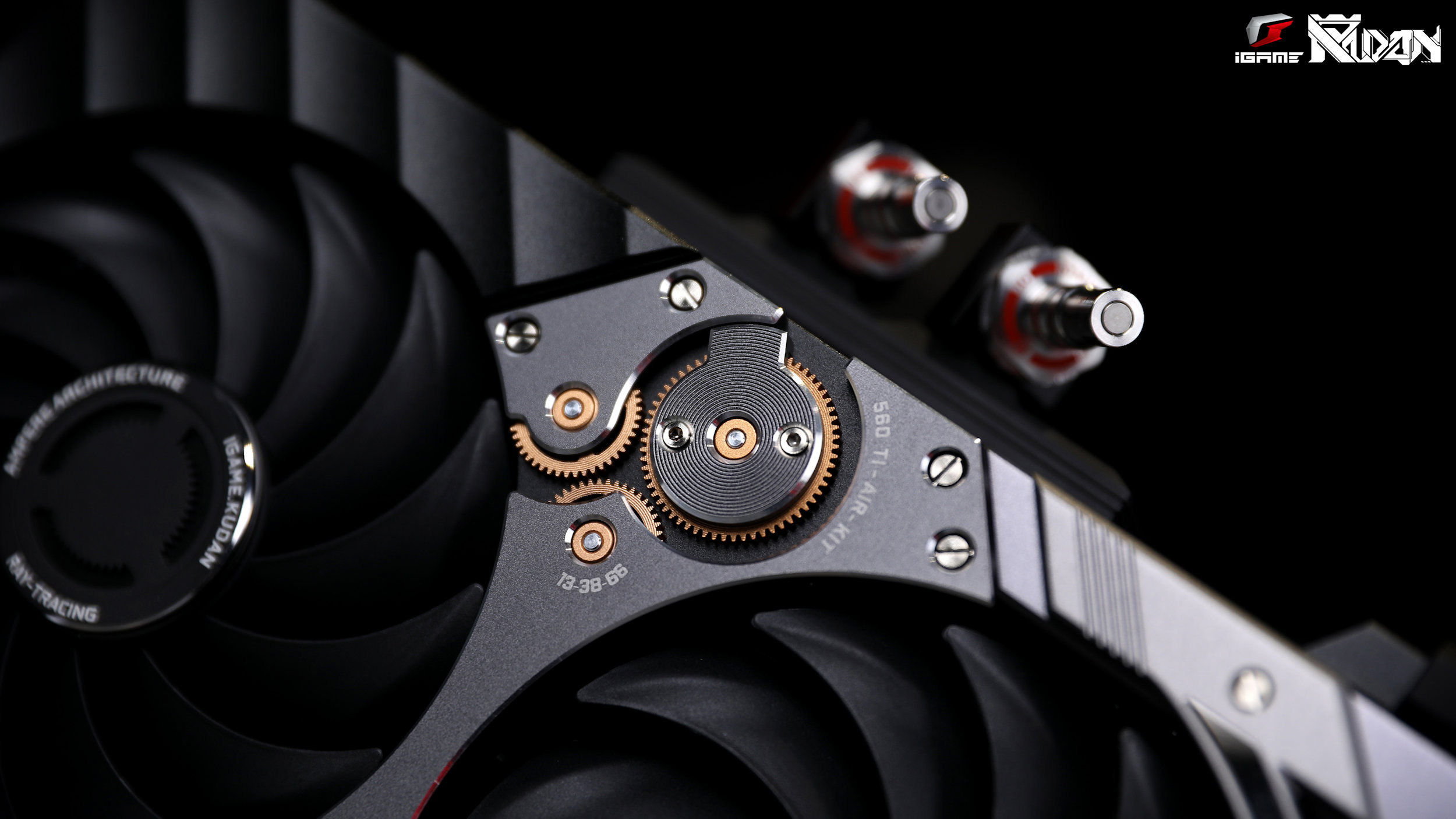Wyjątkowość GeForce RTX 3090 KUDAN sprowadza się tak naprawdę do każdego elementu karty. Flagowy rdzeń graficzny, wyjątkowe hybrydowe chłodzenie i rozbudowana obudowa utrzymana w czerni i szarości z aluminium obrabiana CNC, to połączenie, obok którego trudno przejść obojętnie. Zwłaszcza przez skomplikowane wzory wraz z kultowymi złotymi zębatkami i akcentami, które dopełniają luksusowy wygląd modelu. Podkreśla go 60 Hz wyświetlacz LCD i podświetlenie RGB.