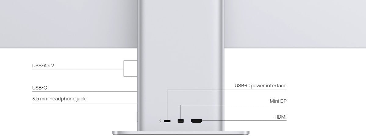 Obsługuje jednak 10-bitową głębię kolorów, pokrywa 98% zakresu DCI-P3 i 100% sRGB, będąc skalibrowanym pod deltaE < 2 albo deltaE < 1, jeśli wykorzystujecie spektrum sRGB. Tak profesjonalny i szczegółowy panel nie może się jednak równać z MateView GT pod kątem odświeżania, bo oferuje tylko 60 Hz i to wyłącznie przy użyciu USB-C lub miniaturowej formy DisplayPortu 1.2. Obok niego ma też do zaoferowania HDMI 2.0 (ograniczone do 50 FPS), dwa portu USB-A 3.0, USBC- do zasilania dołączonym 135 W zasilaczem, porty jack 3.5 mm, dwa mikrofony i lepsze, bo już 5-watowe głośniki w odmienne podstawie.