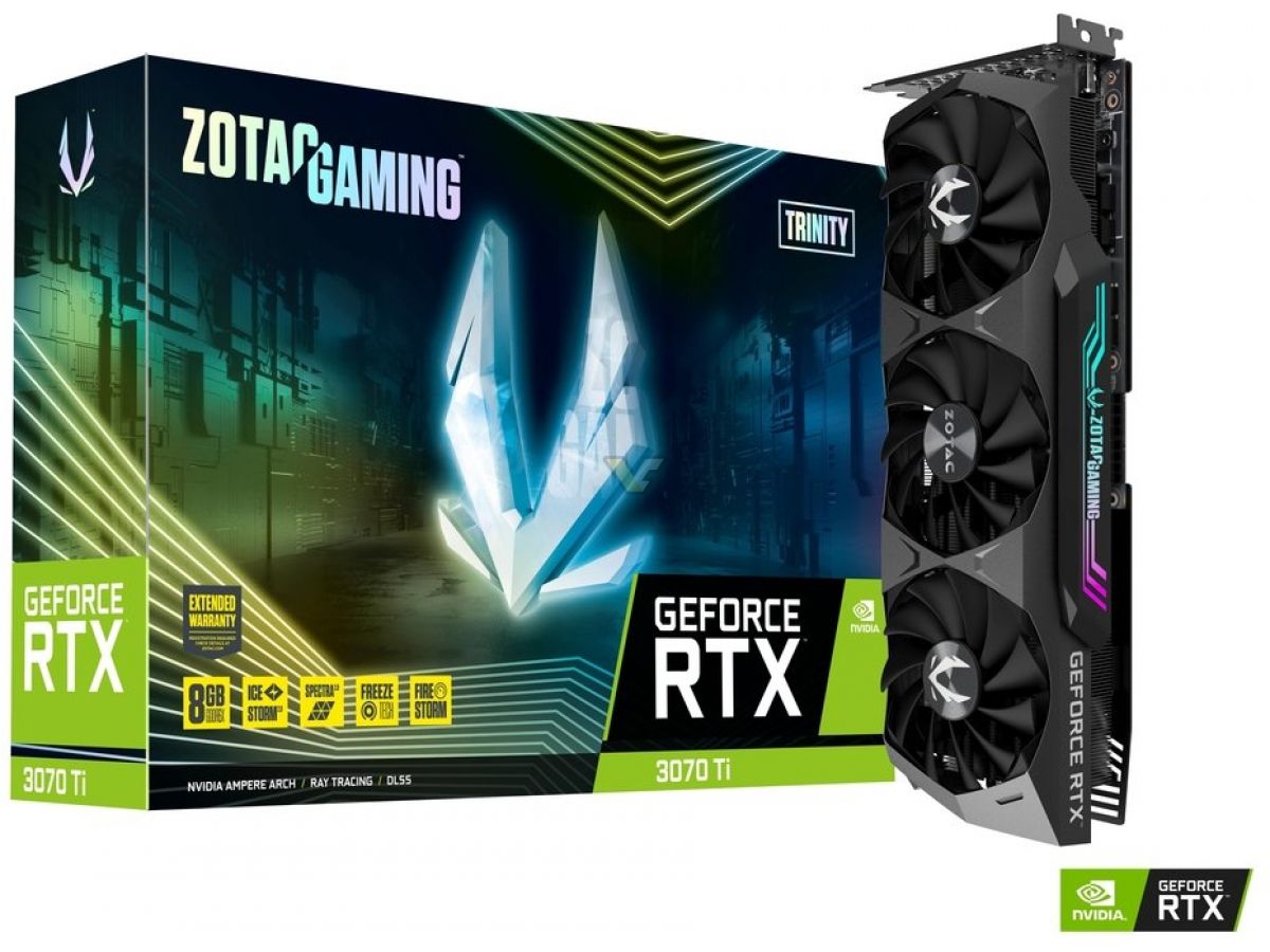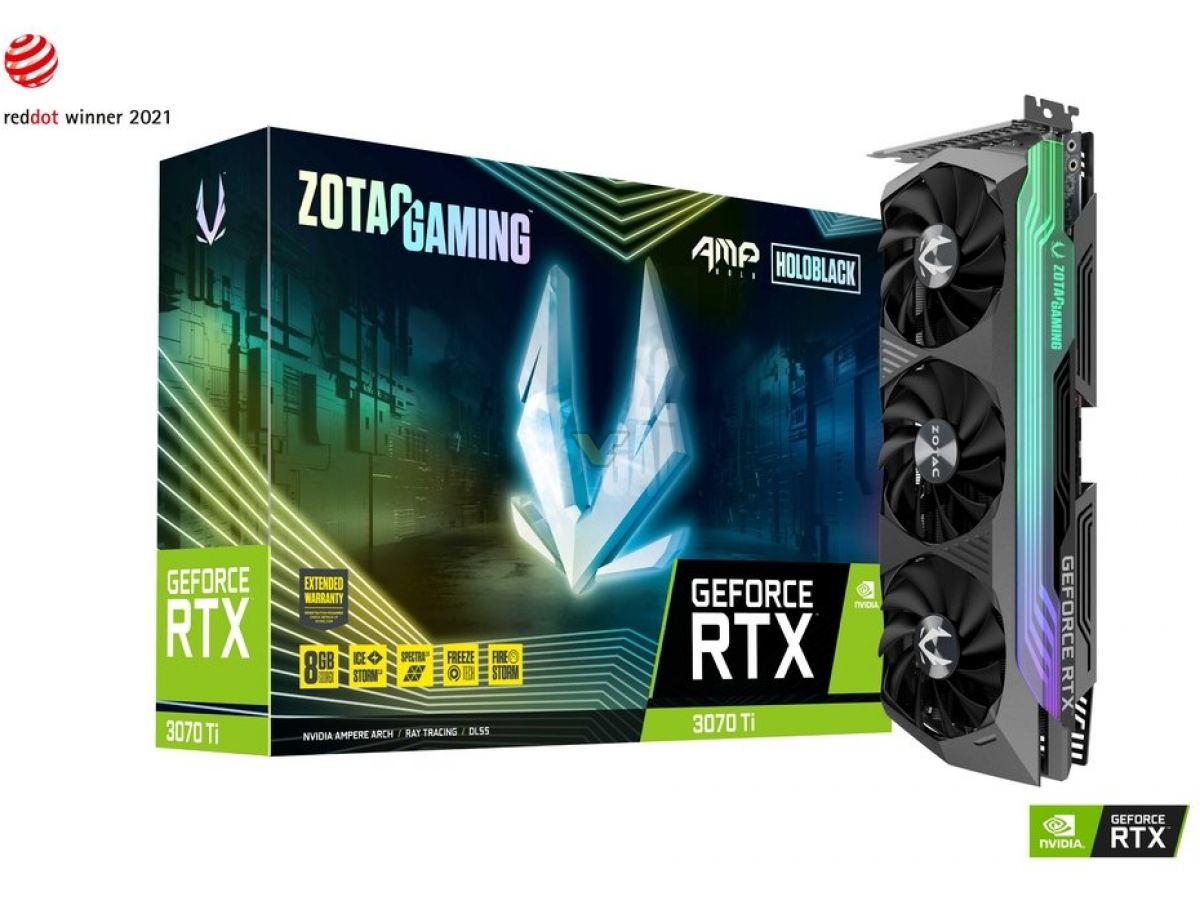Zotac zaszalał już nieco bardziej, ujawniając wersje Trinity i Trinity OC dla RTX 3070 Ti, jak również AMP Holo i AMP Extreme Holo dla obu nowych modeli.