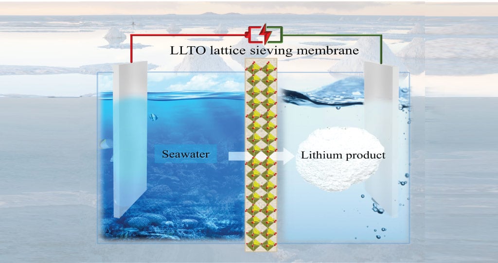 Proces, w którym uzyskuje się ponoć “tani lit” opiera się na ogniwie elektrochemicznym podzielonym na trzy części. Do tego pierwszego wpływa woda morska, z której dodatnio naładowane jony litu przechodzą przez membranę LLTO do drugiej komory zawierającej roztwór buforowy i katodę miedzi pokrytą platyną i rutenem. Tymczasem jony naładowane ujemnie przechodzą przez membranę anionowymienną do trzeciego przedziału zawierającego roztwór chlorku sodu, gdzie są przyciągane do anody platynowo-rutenowej.