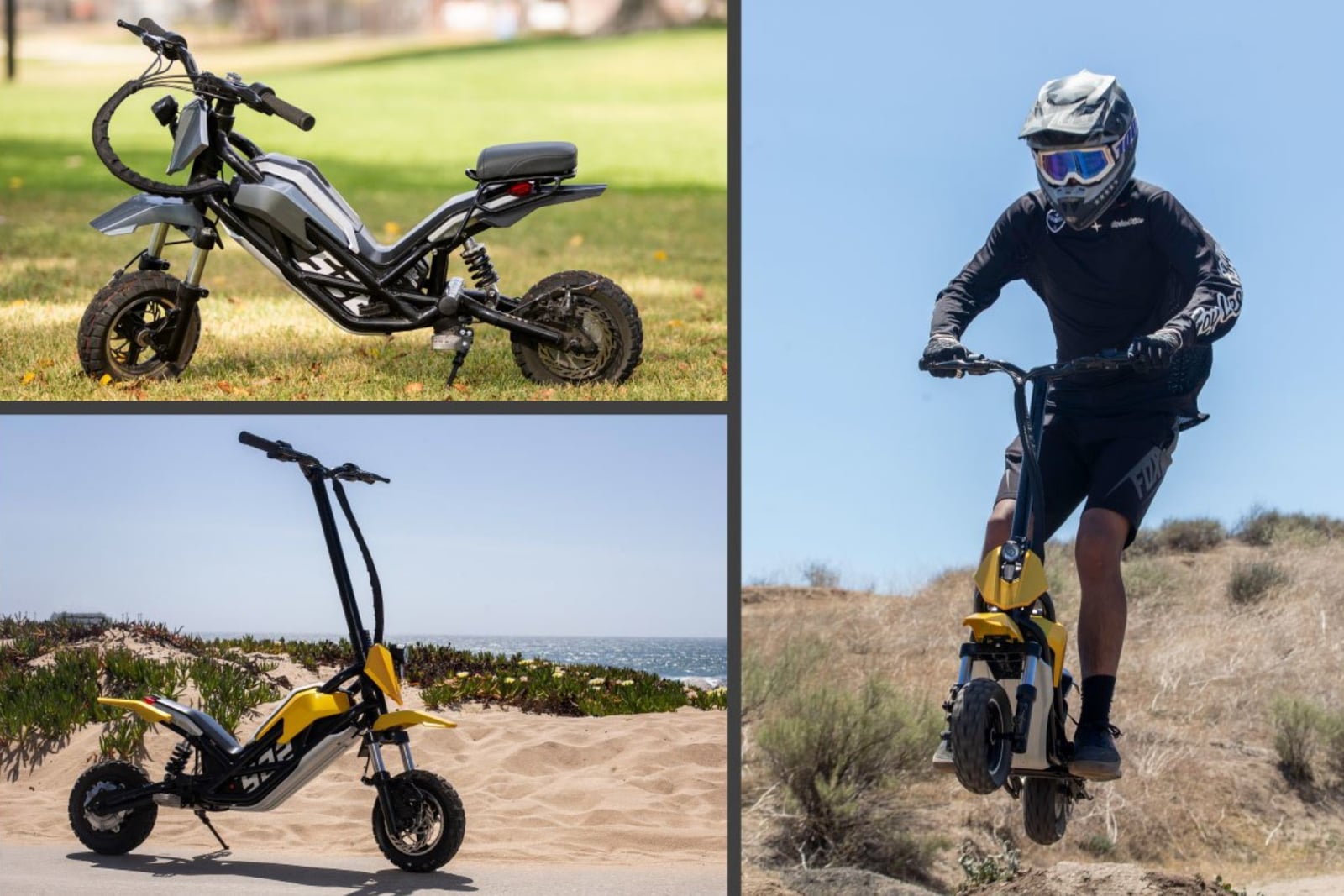 Ta firma z Kalifornii połączyła w ramach Transformer elektryczną hulajnogę i miniaturowy motocykl, okraszając swoje dzieło adekwatną nazwą. Swoją podwójną naturę ten pojazd elektryczny zawdzięcza głównie regulowanej pod kątem wysokości kierownicy, którą można dostosować zarówno do pozycji siedzącej, jak i stojącej. W obu “trybach” pojazd zachowuje się identycznie, wspierając nas albo skromnym siodełkiem, albo dwoma podnóżkami.