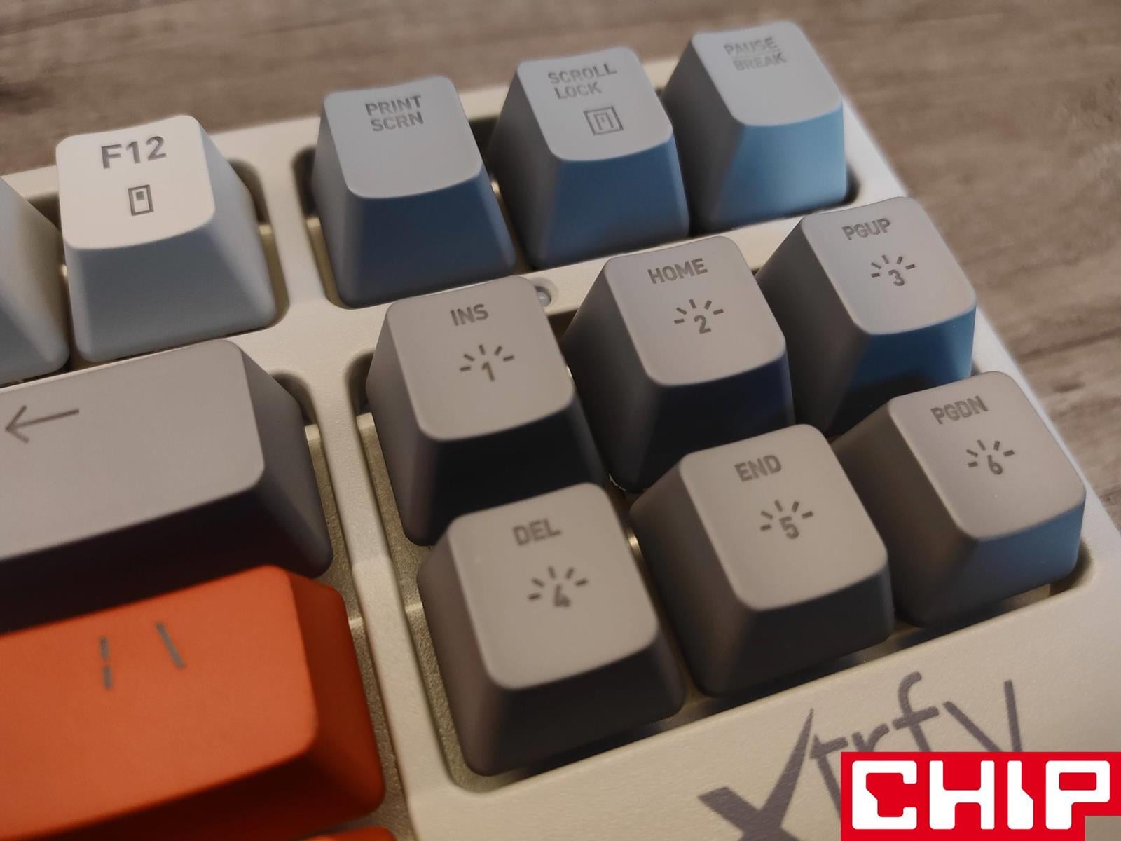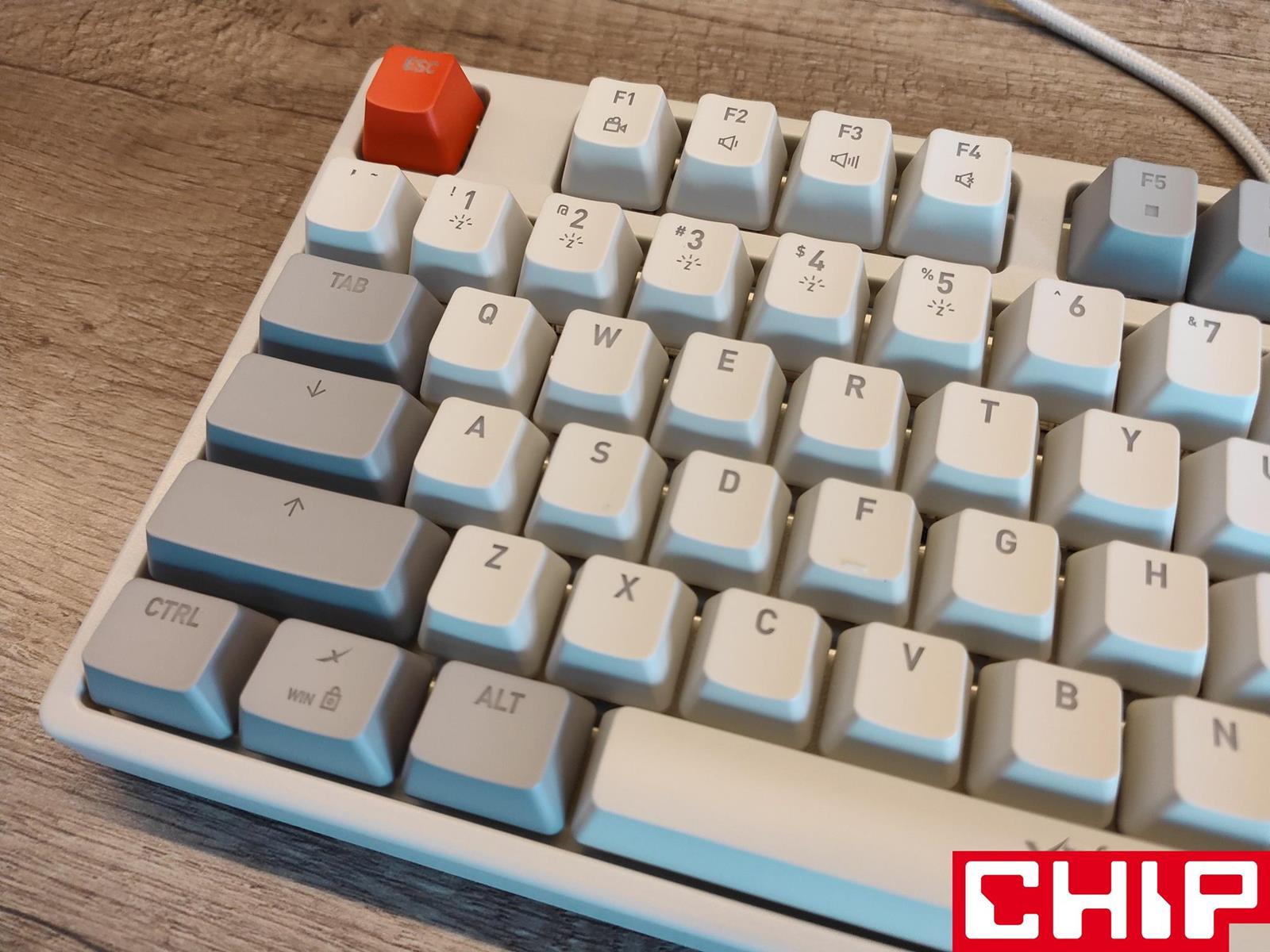 Mylnie uznałem, choć Xtrfy sam to zasugerował, że pod klawiszami od 1 do 5 znajdują się jakieś funkcje, jak zresztą również pod scrolllockiem. Są to jednak tylko ozdóbki. Producent zresztą nieźle zabawił się czcionką i klawiszami, bo sięgnął nawet po niestandardowe, odwołujące się do niego oznaczenia na spacji, klawiszu Windows czy enterze. Nadaje to K4 TKL RGB Retro dodatkowej unikalności, którą grubą krechą podkreśla świetne oświetlenie.