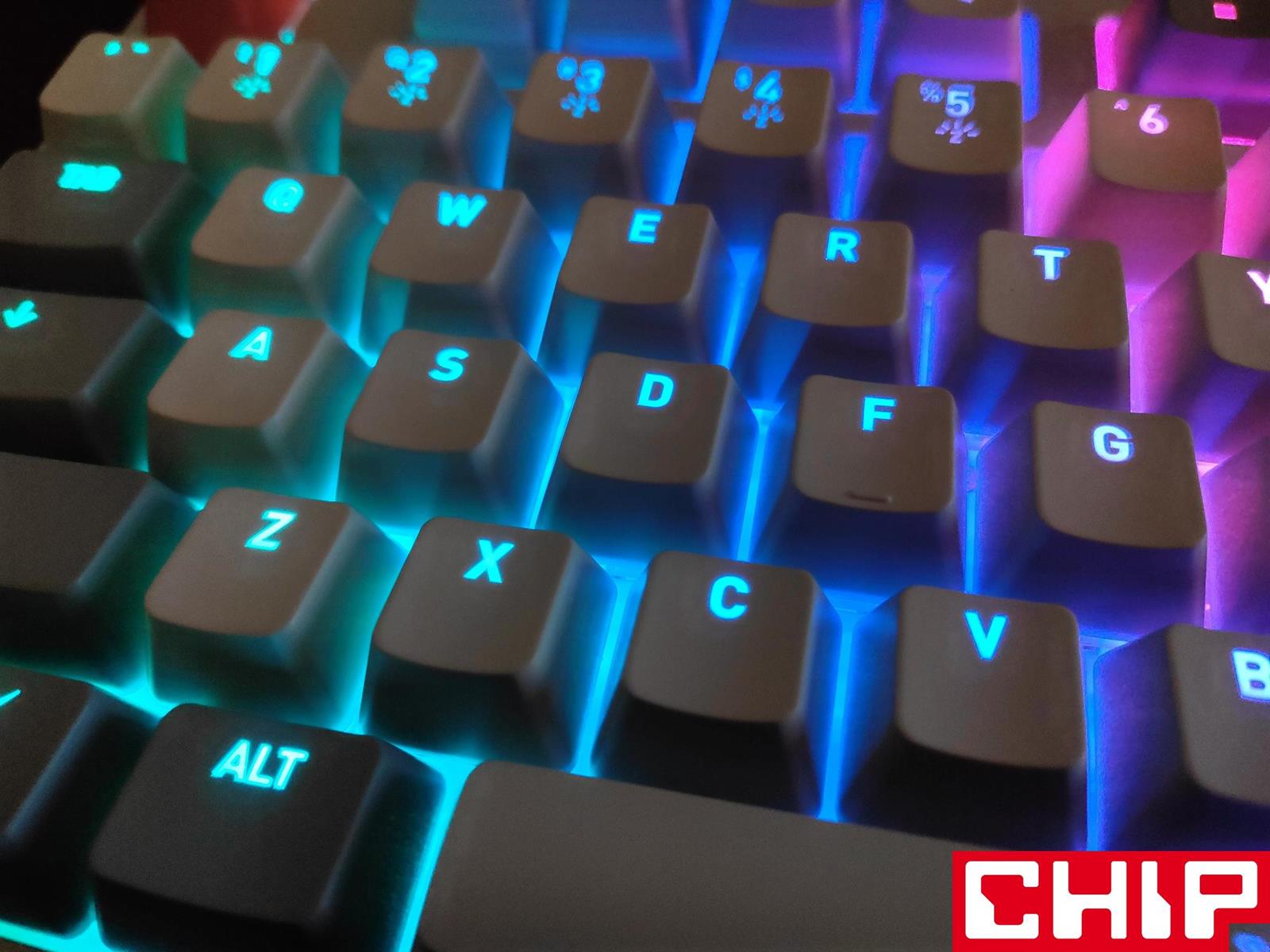 Rozlewa się bowiem w świetnym stylu po cudownie skrojonej czcionce, a jako że klawiaturę okraszają jasne barwy, te efekty tylko zyskują na swojej cukierkowości i efektowności. Co tu dużo mówić – K4 TKL RGB Retro posiada w moich oczach jeden z najładniejszych systemów podświetlenia o zadziwiająco wysokiej jasności.