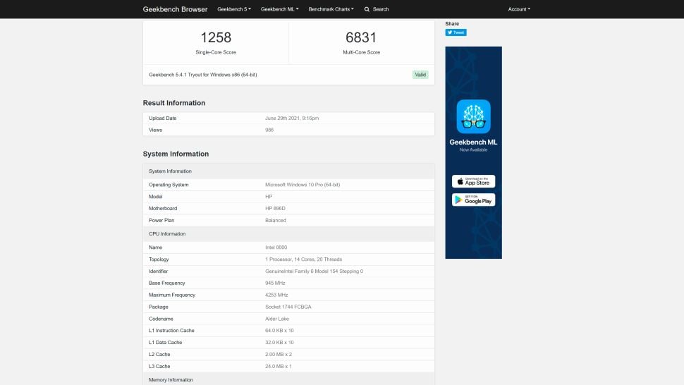 Jeśli nie flagowy, to przynajmniej jeden z najwydajniejszych procesorów Alder Lake-P pojawił się w Geekbench 5 ze swoimi 14 rdzeniami, 20 wątkami i 24 MB pamięci L3. Jasno wskazuje to na konfiguracje sześciu rdzeni Golden Cove z Hyper-Threadingiem oraz ośmiu energooszczędnych Gracemont. Ich taktowania wynosiły od 945 MHz do 4253 MHz, ale jak to Geekbench, zwykle rzetelnych zegarów nie podaje. Wzrost o 4253 MHz, ale prawdopodobnie błędnie podaje wartości, więc nie zwracalibyśmy uwagi na te liczby.