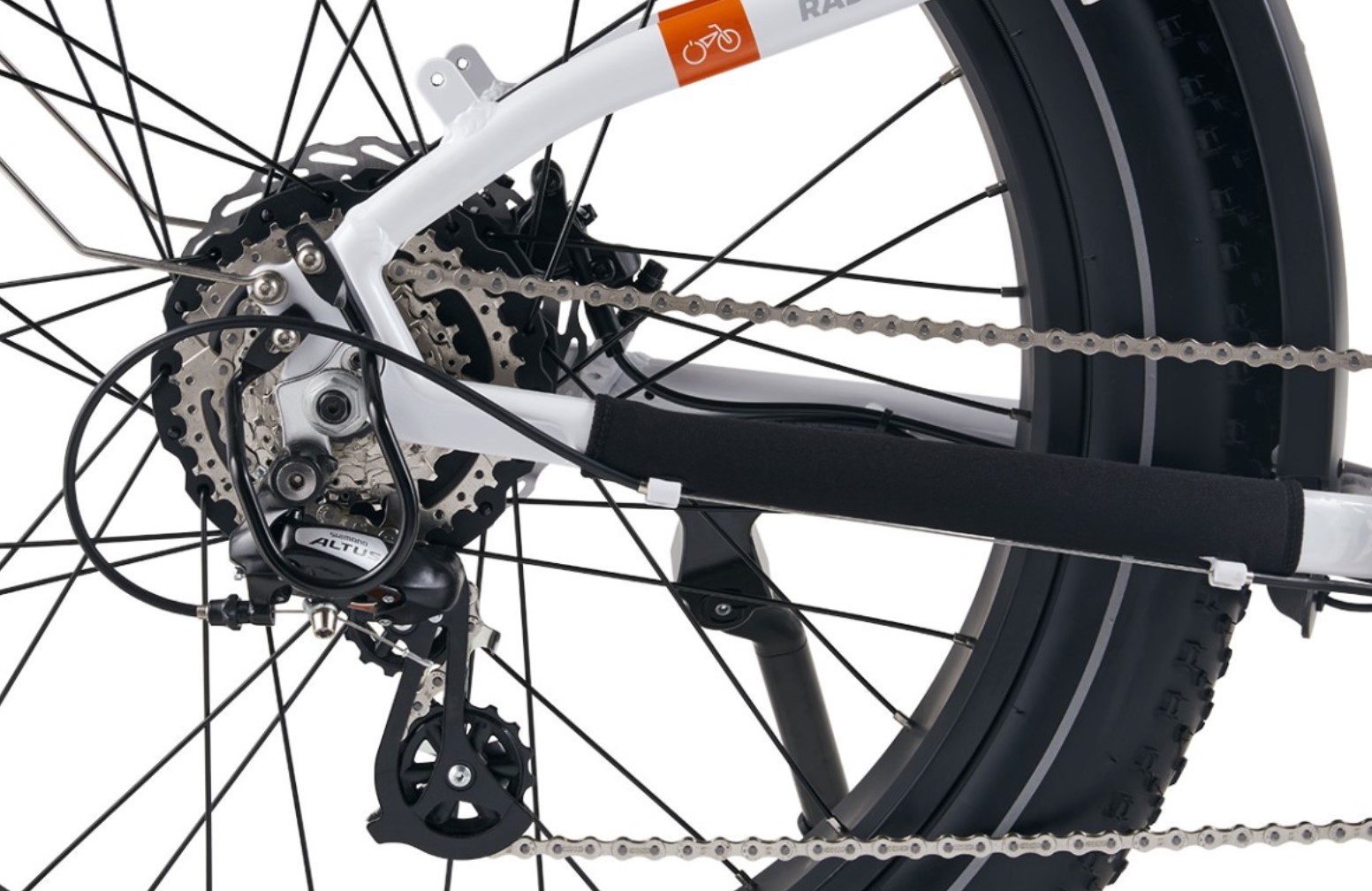 Przechodząc już do tego najważniejszego, napęd RadRover 6 Plus łączy ulepszony, demontowany akumulator zamknięty w aluminiowej osłonie o pojemności 672 Wh oraz równie usprawniony silnik elektryczny w tylnej piaście o mocy 750 W, który ponoć lepiej radzi sobie z pokonywaniem wzniesień. Częścią napędu jest też 7-biegowa przerzutka Shimano.