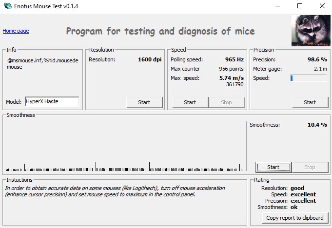 Jeśli idzie o moje subiektywne wrażenia w kwestii precyzji modelu Pulsefire Haste, to mogę śmiało zaryzykować stwierdzenie, że poziom czułości do 2000 DPI będzie odpowiadał każdemu. Wyżej do głosu zaczyna dochodzić wyczuwalny smoothing, niszcząc świetny “optyczny feeling” tego sensora, co po przekroczeniu pułapu 3600 DPI dodatkowo zyskuje na sile przez dający się we znaki jittering wysokiej częstotliwości.