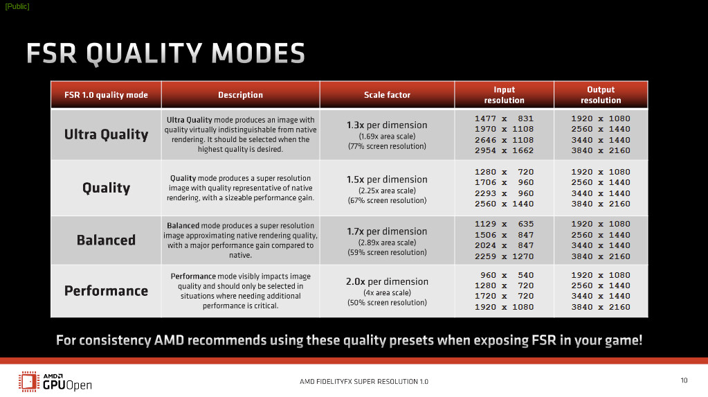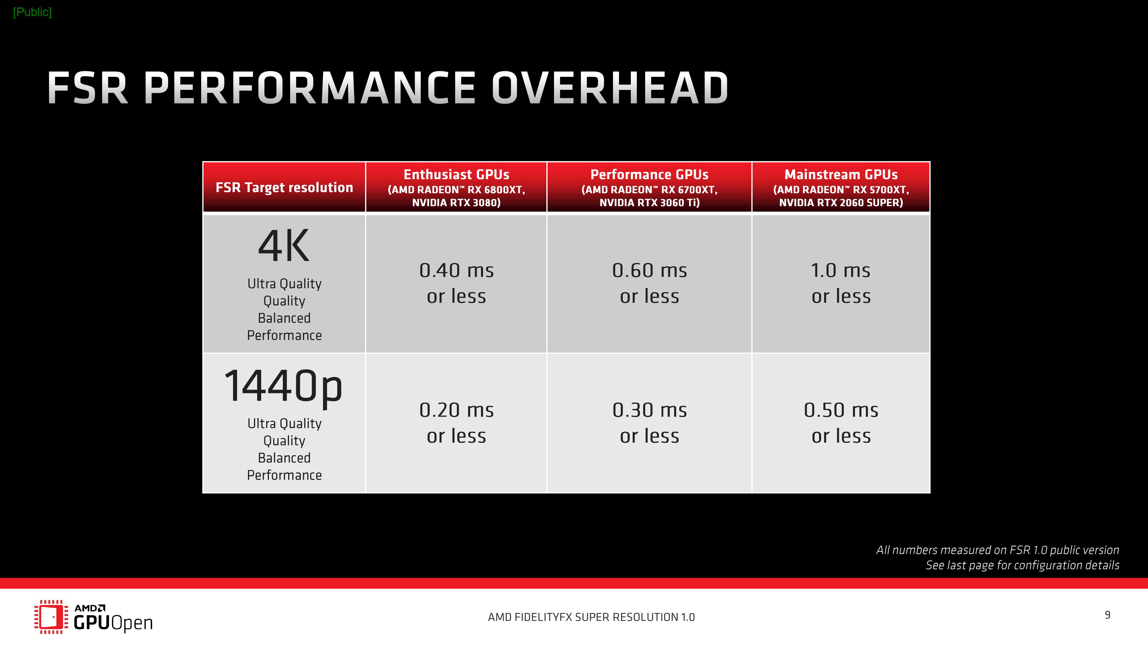 W ogłoszeniu AMD ujawniło wszystkie najważniejsze szczegóły FSR ze szczegółowymi opisami, obiecując jednocześnie minimalne obciążenie sterownika z włączonym FSR bez względu na rozdzielczość, ale zależnie od karty graficznej.