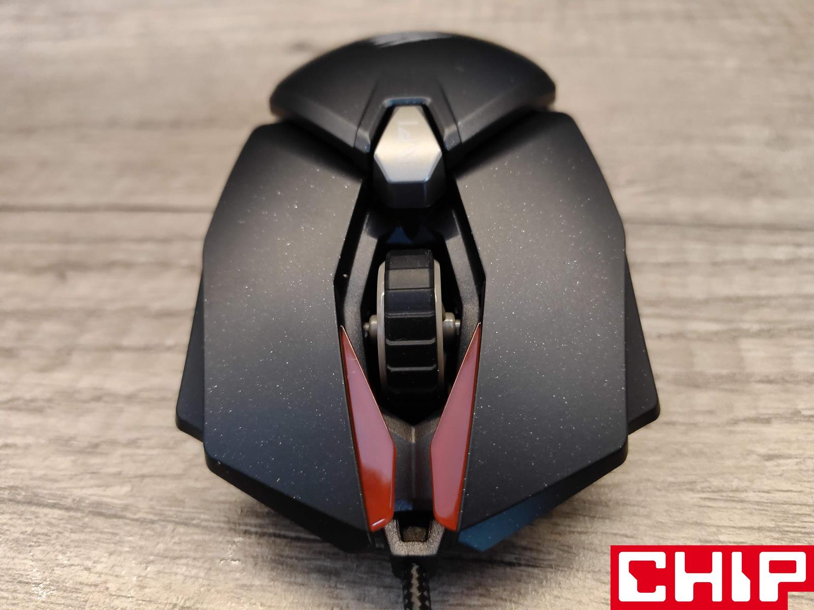 Najlepsze zostawmy na koniec, skupiając się najpierw na poprawnie, szybko i pewnie działających przyciskach bocznych, które uzupełnia zdecydowanie solidnej klasy przycisk funkcyjny do zmiany DPI. Rolka, choć z pozoru masywna, działa płynnie i nie wymaga aż tyle siły. Ma wprawdzie gęsto usłane łożysko, co czuć od razu, ale jego wyczuwalne pod palcem przeskoki jednoznacznie wskazują nam, ile “scrollów” robimy. Na dodatek nie piszczy nawet przy agresywnej, szybkiej pracy, choć do najcichszych zdecydowanie nie należy.