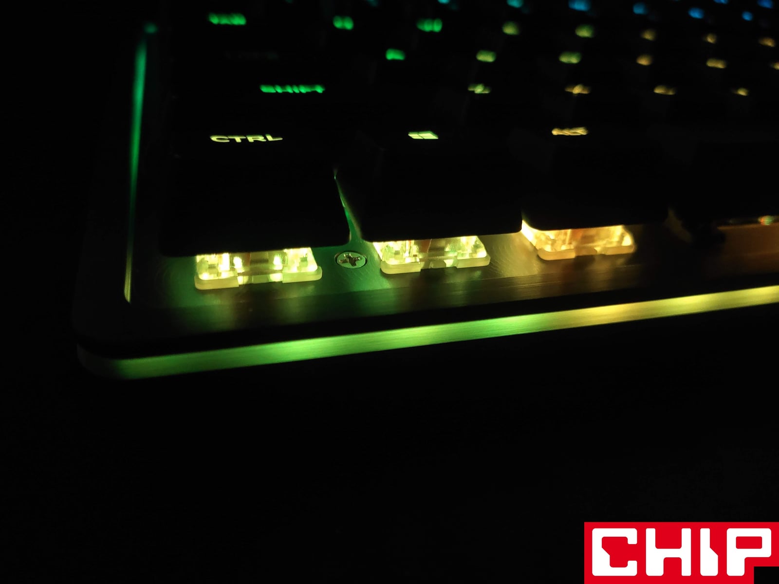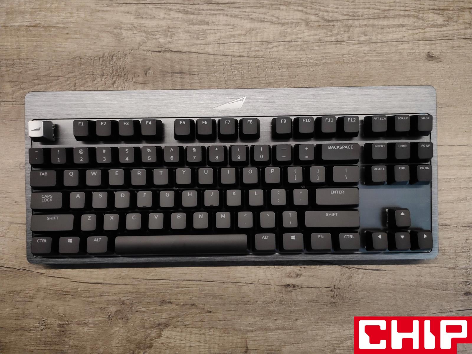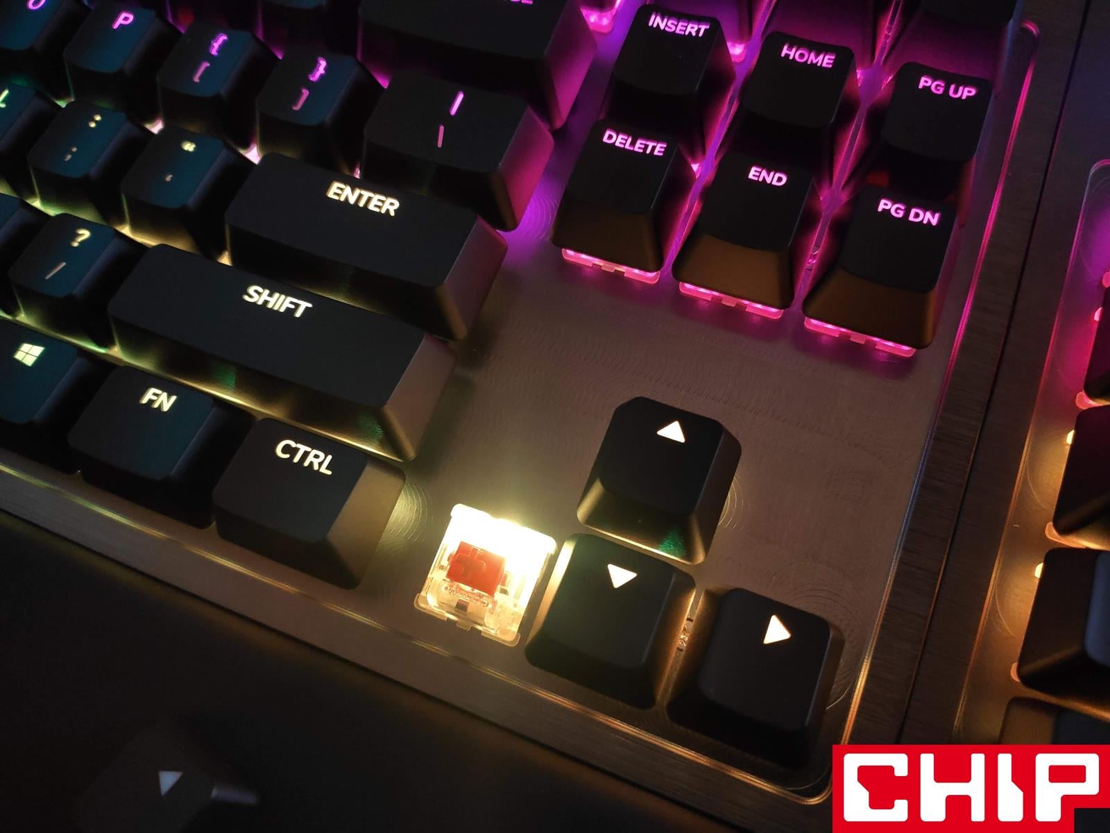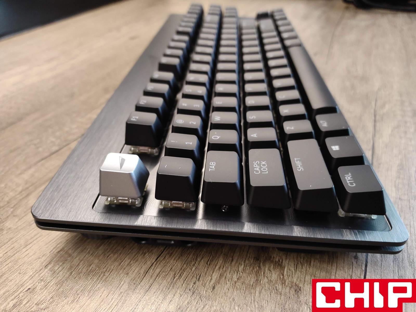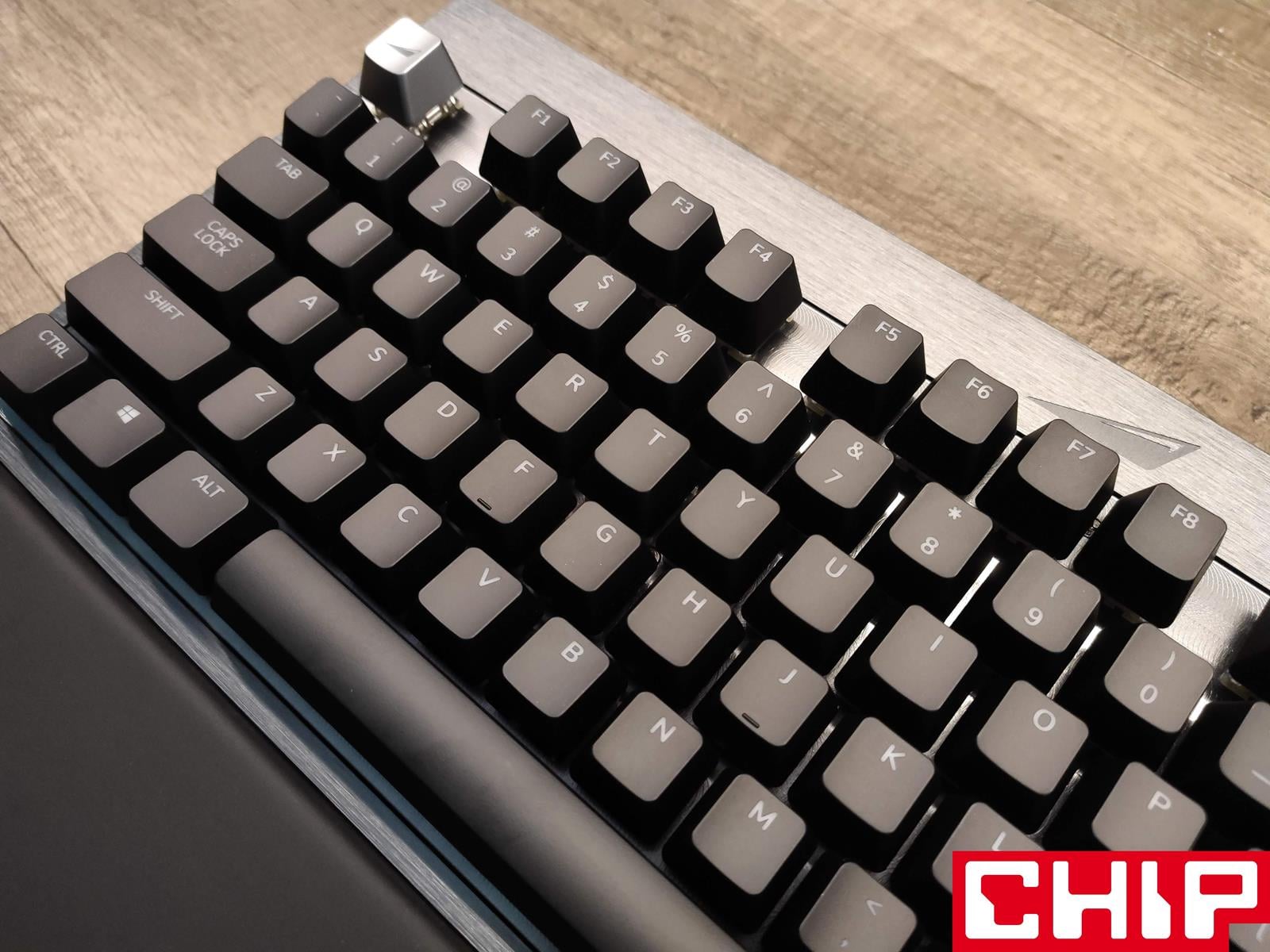 Szanse na zrobienie z tego modelu klawiatury na lata podkreśla również świetnie prezentujący się metalowy panel górny utrzymany w ciemnej szarości, który przyjmuje formę szczotkowanej faktury na krawędziach i znacznie ciekawszej radialnej wokół przełączników. W dłuższym czasie eksploatacji jednym z największych problemów co do długowieczności mogą okazać się dodatkowe wsporniki na dłuższych przyciskach (spacji, enterze, shifcie, czy capslocku), które stabilizują je poprzez wysuwane trzonka odpowiadającego “krzyżakom” samego przełącznika. Są one bowiem po prostu przesmarowane, a użyty w tym celu specyfik może stracić swoje właściwości.