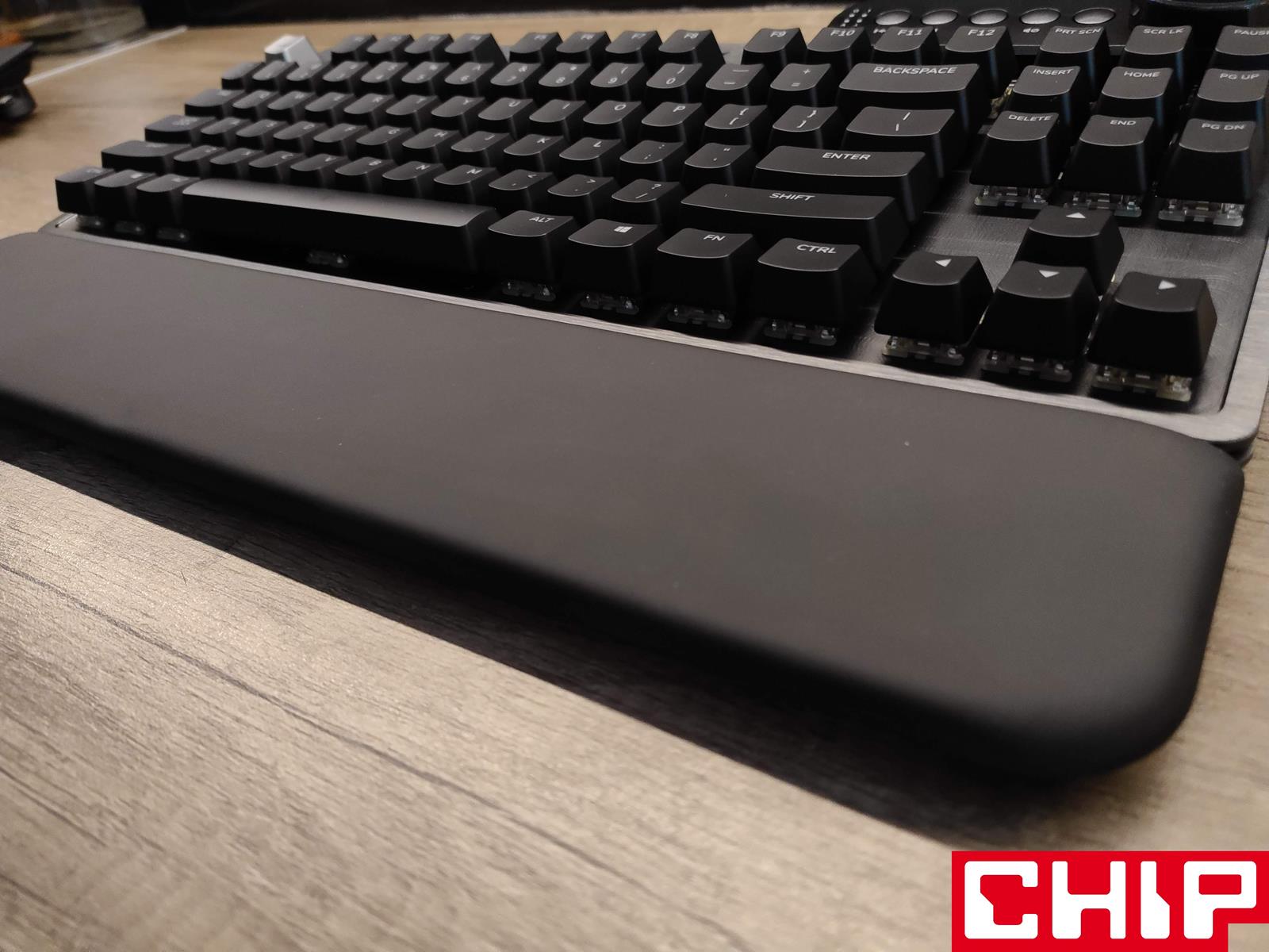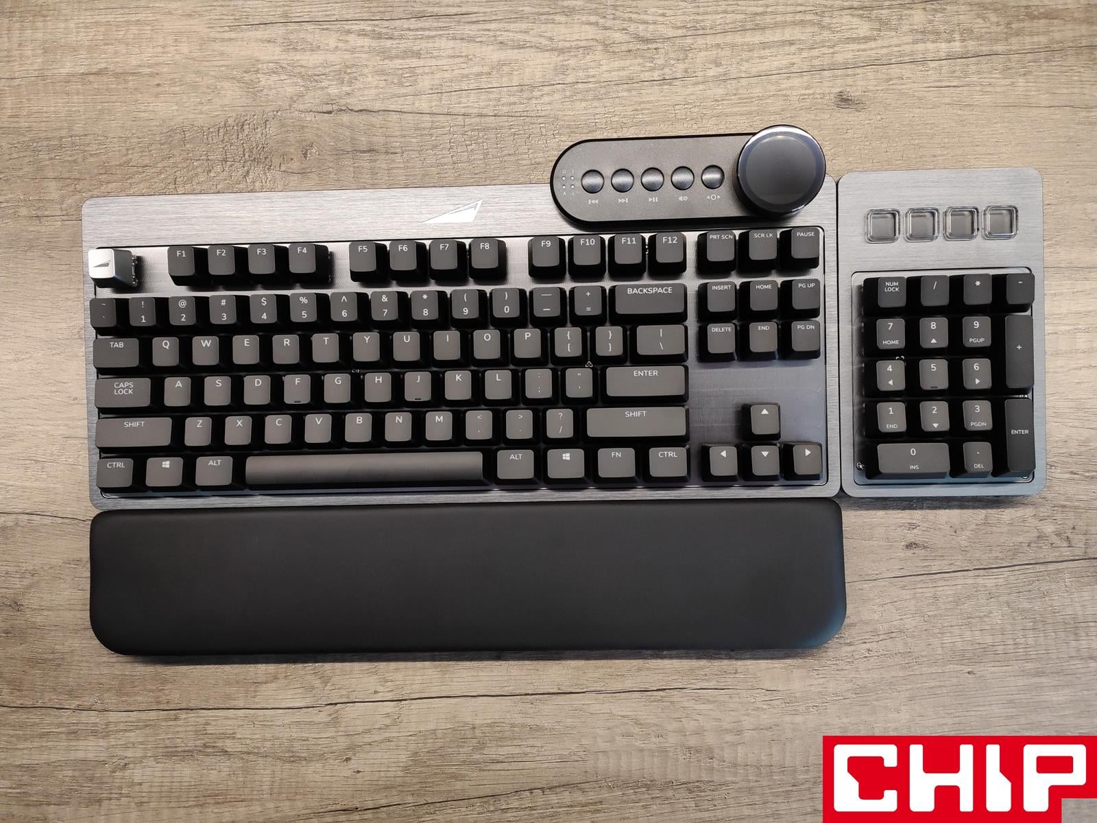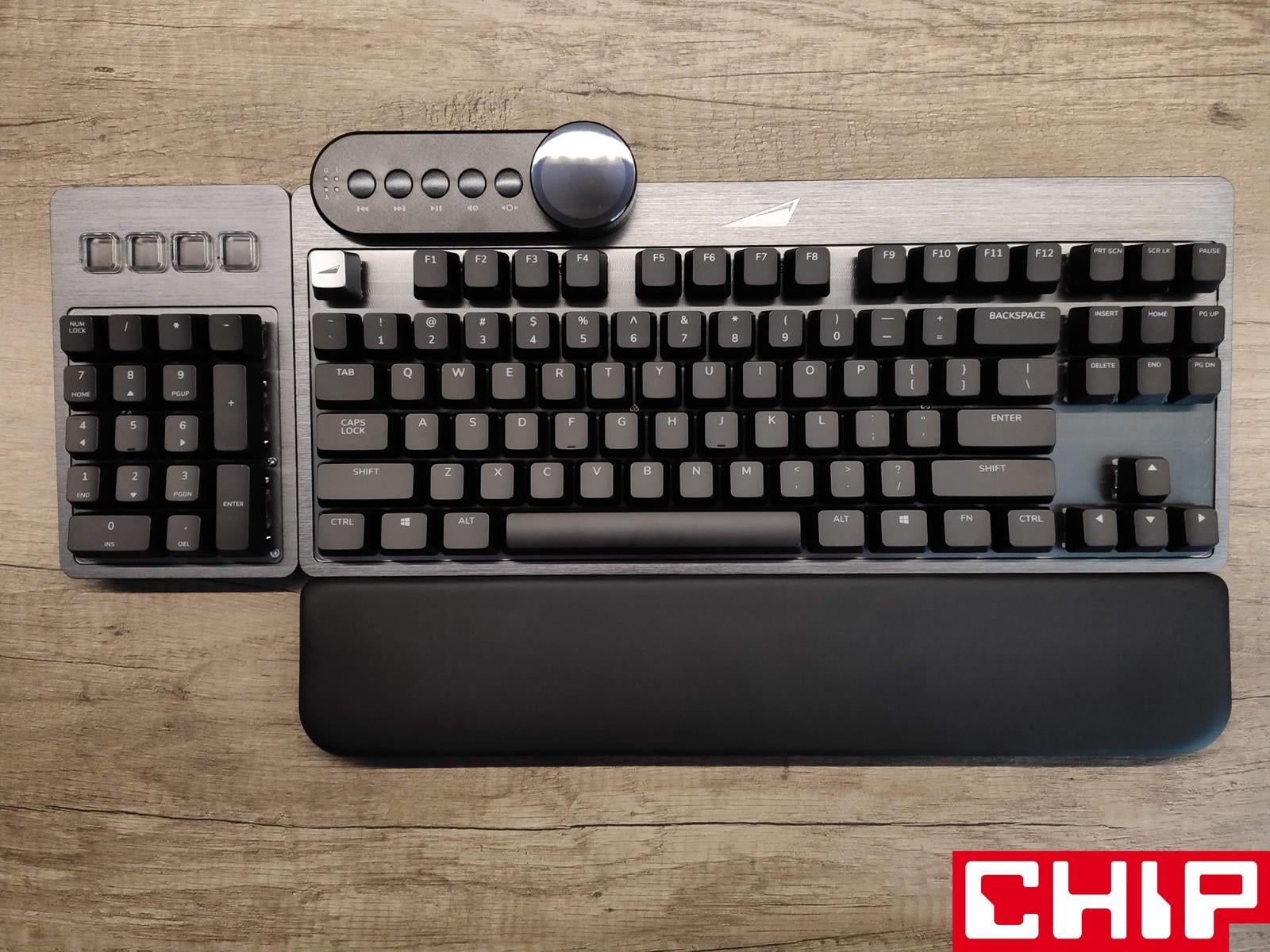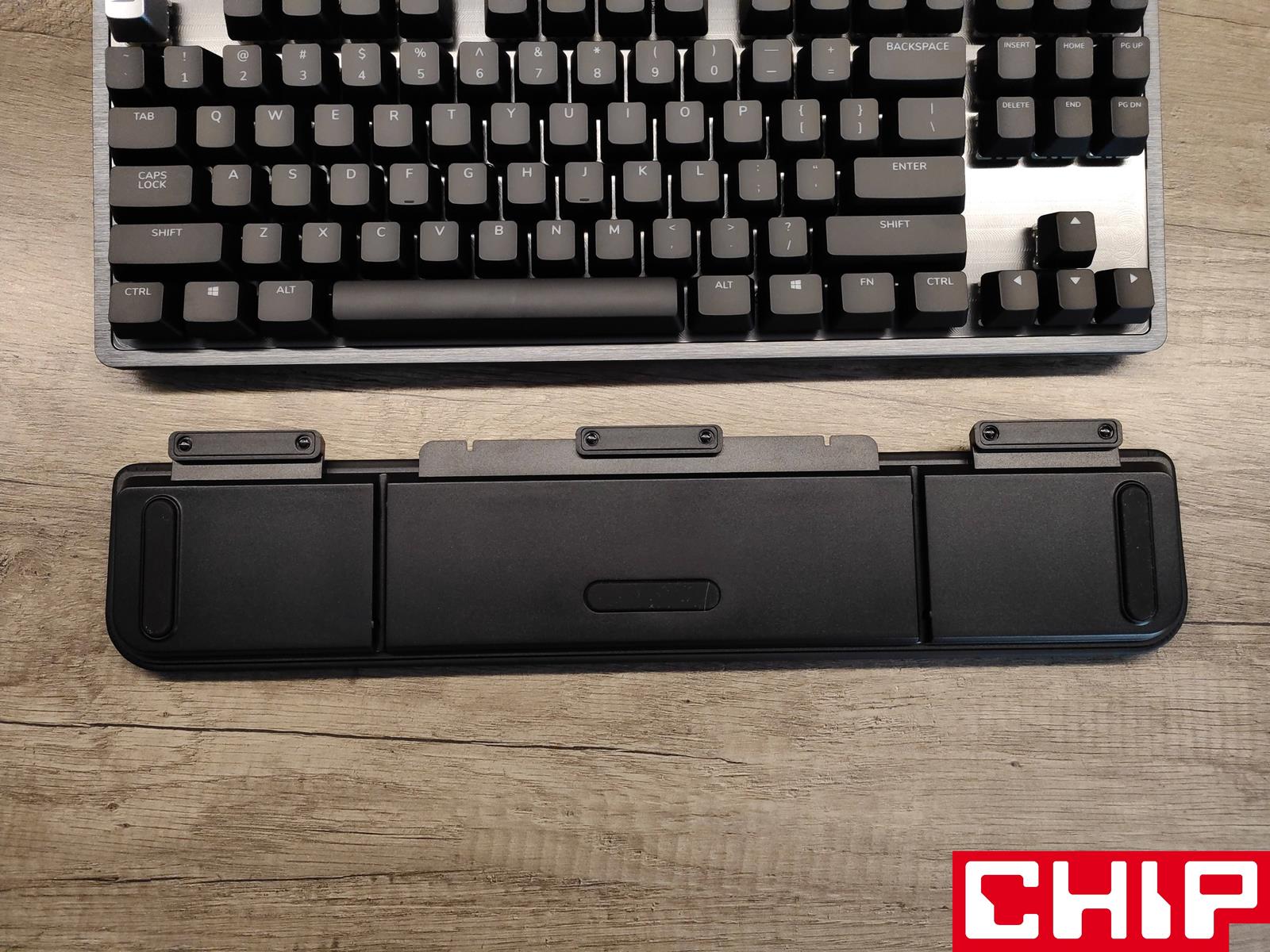 Może trochę przesadzam, ale musicie wiedzieć, że z tej klawiatury możecie korzystać w łącznie w sześciu konfiguracjach zależnie od własnego widzimisię. Musicie zabrać ze sobą klawiaturę na lanparty? Nie ma problemu – Everest Max możecie wykorzystać jako małoformatowy model przewodowy typu TKL. Nadgarstki zaczynają boleć? Nie ma problemu – ot tego jest dołączona w zestawie magnetyczna podkładka o odpowiedniej szerokości, długości i wysokości, która zapewnia świetną wygodę, dzięki połączeniu twardej pianki z ciasno owiniętą wokół niej sztuczną skórą.