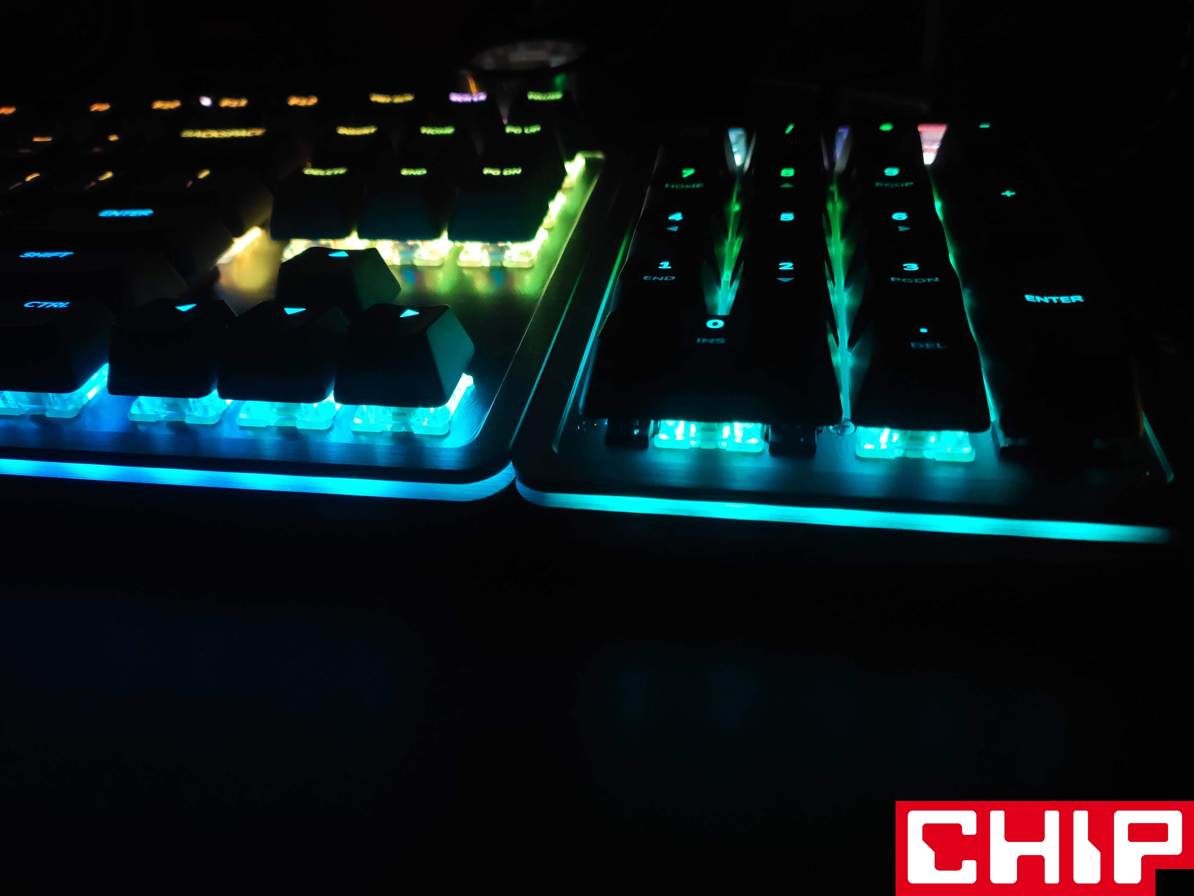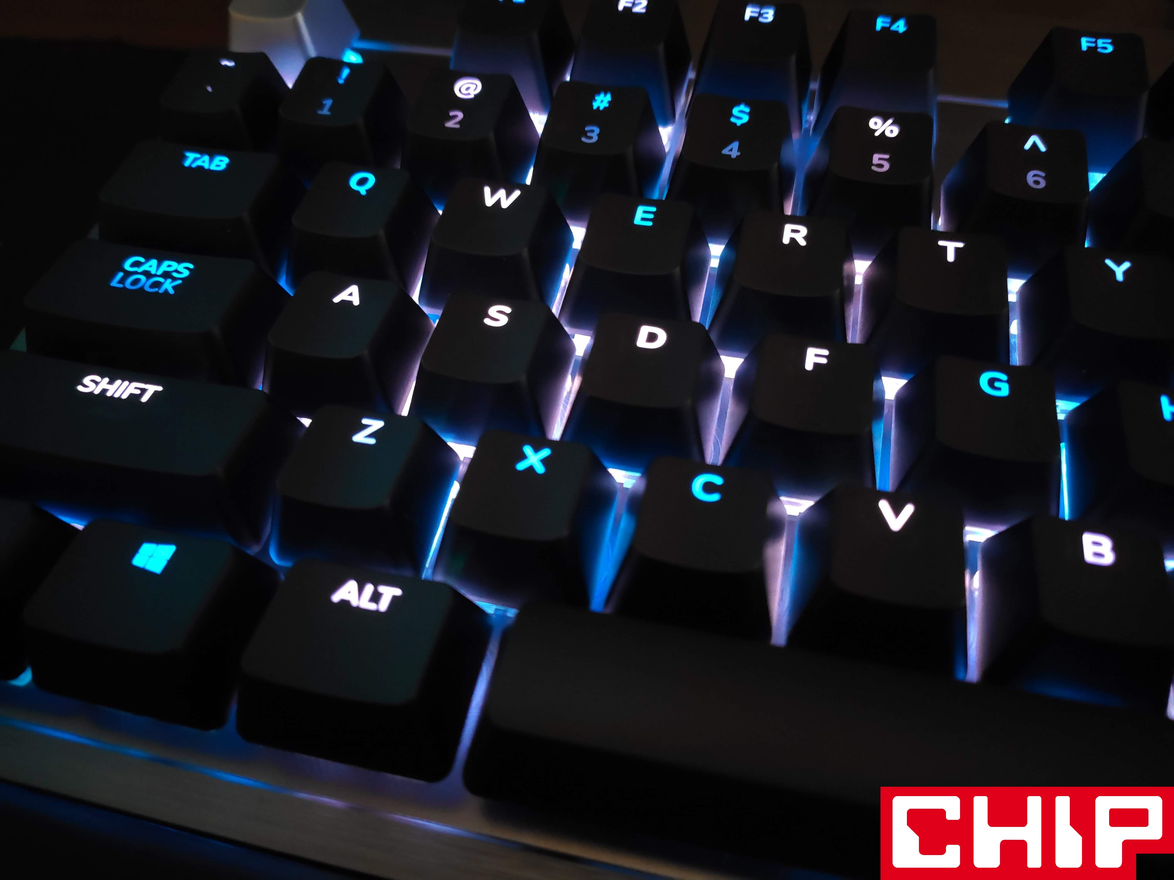 Co ważne, podświetlenie w Everest Max sprowadza się nie tylko do pojedynczej diody pod każdym przyciskiem, ale też rozciągającej się wokół klawiatury mlecznej wstawki, łączącej plastikową podstawę z metalowym panelem. Chociaż samo podświetlenie nie należy do tych najbardziej efektownych, z jakimi miałem do czynienia, to śmiało mogę ocenić je na 9/10, bo spisuje się świetnie, ale po prostu nie ma w sobie “tego czegoś”. Wiecie… tego efektu “wow”, ale dzięki prostej czcionce i technologii Dual-Injection nawet najniższy poziom jasności diod (na czterech poziomach: (0, 25, 50, 75 100%) idealnie oświetla czcionkę.