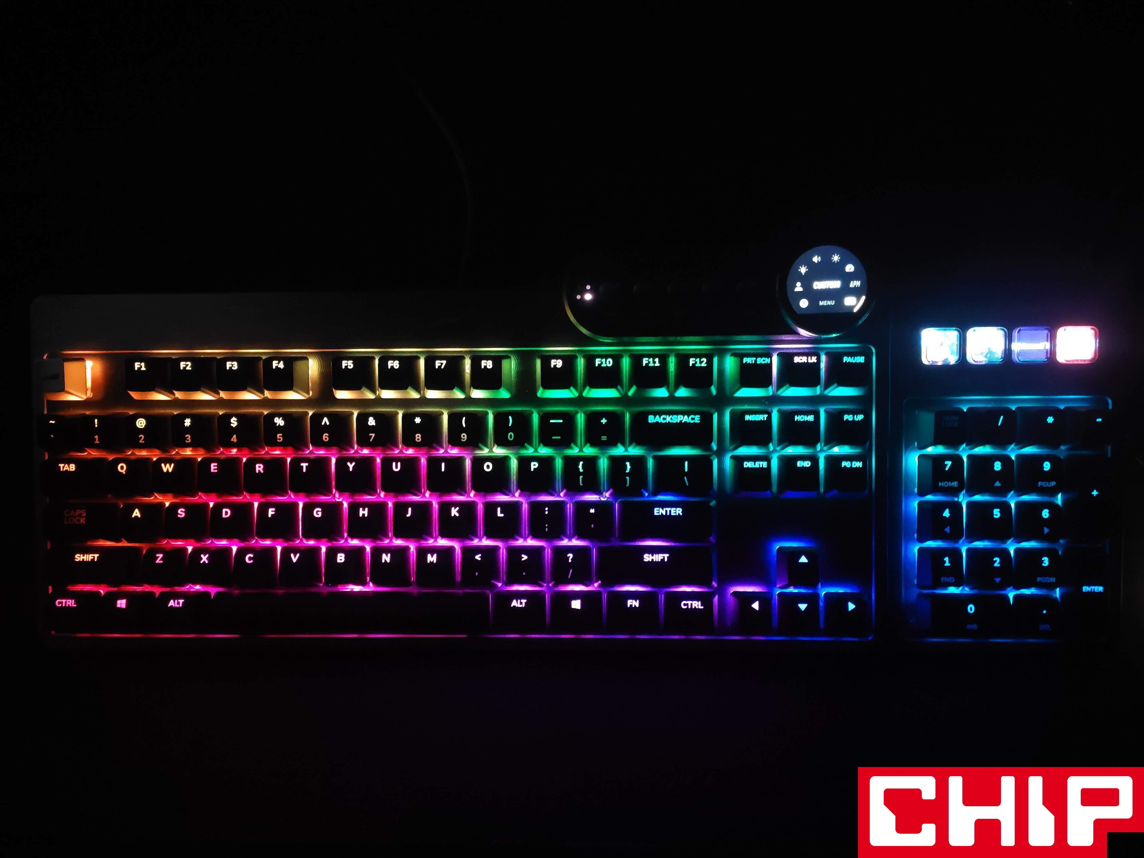 Modułowość tego modelu jest oczywiście najważniejsza, ale producent podszedł do niej z pomysłem i tak też zmusił mnie do korzystania z całego zestawu Everest Max, choć od zawsze miłuje najprostsze konstrukcje TKL. Jak tu jednak nie dać się skusić czterem programowalnym przyciskom z kolorowymi wyświetlaczami LCD TFT o rozdzielczości 72×72 pikseli na numepadzie?