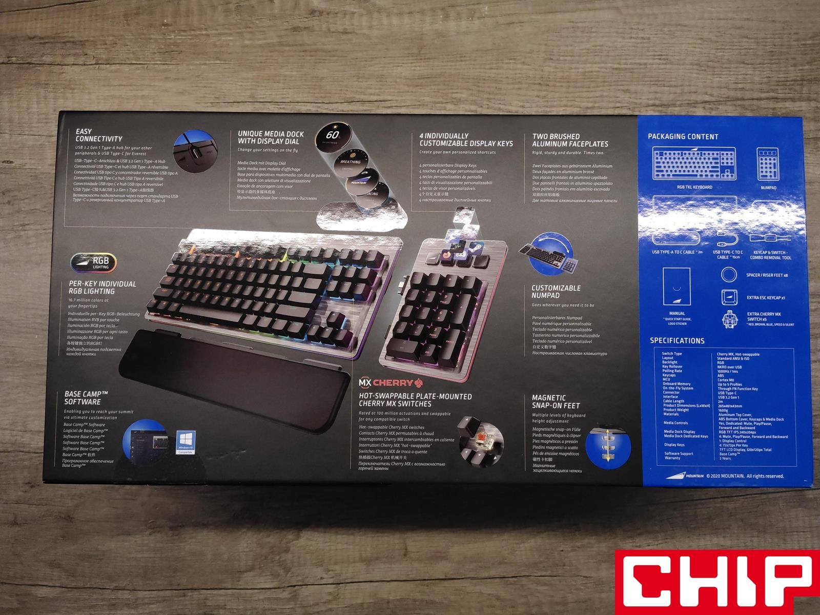 Wielkie, przytłaczające wręcz grubością właściwe pudełko Mountain Everest Max zapisze się z pewnością w Waszej pamięci już przy samym unboxingu. Czarny solidny karton uzupełniony z drugiej strony renderami i najważniejszymi szczegółami o modelu otwieramy niczym średniowieczną skrzynię, podnosząc jej namagnesowane wieko. Pod nim od razu wita się z nami zabezpieczona klawiatura oraz podkładka pod nadgarstki, ale to nie koniec.