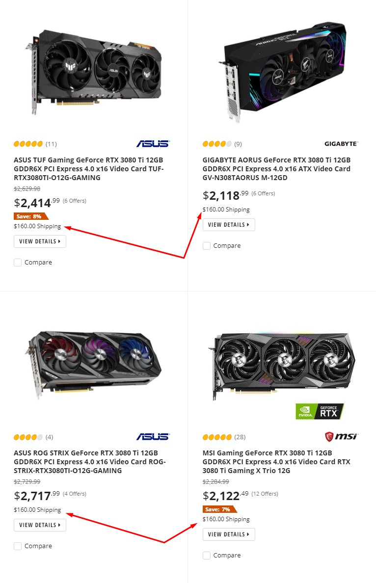 Rynek kart graficznych zaczyna przypominać walkę o zysk. Cyrk trwa, a napływ kart graficznych na Newegg z absurdalnymi kosztami dostawy tylko to potwierdza