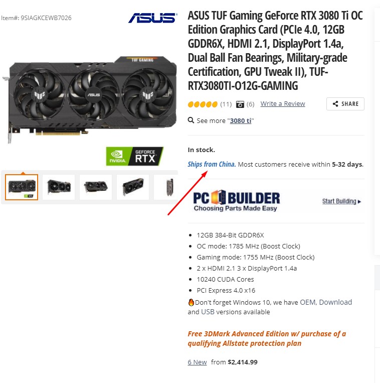 Myślę, że chińscy sprzedawcy detaliczni próbują zarobić, sprzedając zapasy procesorów graficznych, których nie mogą sprzedać w swoim kraju z powodu zakazu kopania kryptowalut i zawyżonych cen. Nie zaskoczy mnie nawet to, że sami sprzedawcy są górnikami, którzy próbują sprzedać swoje używane karty graficzne jako „nowe” lub coś w tym rodzaju, choć uważam to za mało prawdopodobne.