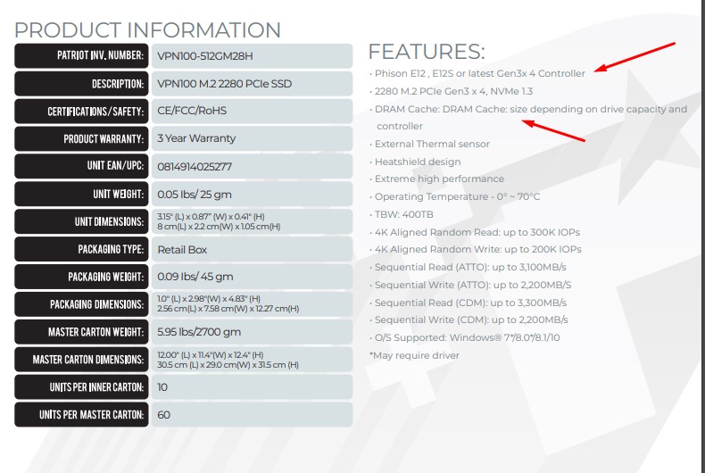 Nasz poprzedni wpis na ten temat znajdziecie tutaj, ale w skrócie wszystko rozbija się o odkrycie użytkownika Hexagonian, który założył wątek Reddicie. Ten wykazał nieścisłość firmy Patriot, która świadomie i bez ogłoszenia tego oficjalnie podmieniła w 2-terabajtowym VPN100 kontroler Phison E12 na Phison E12S i początkowo 2-gigabajtowy pokład pamięci podręcznej DRAM na zaledwie 512 MB.