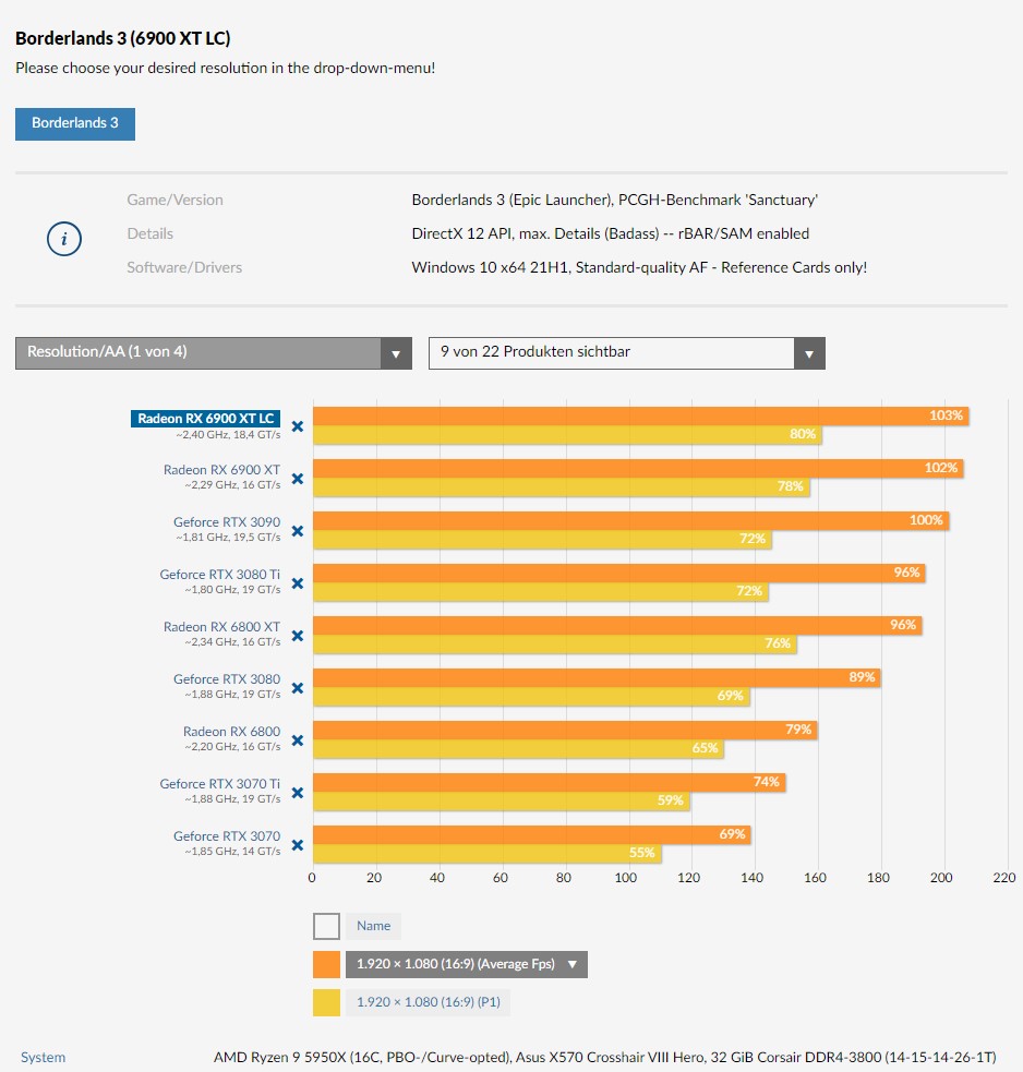 Radeon RX 6900 XT LC jest na swój sposób wyjątkową kartą i nie mówię tutaj tylko o jej fizyczności. Ten model jest bowiem ciągle oferowany wyłącznie producentom zestawów komputerowych i przez to jest nie do zdobycia przez “normalnych” konsumentów w sprzedaży detalicznej. Wspomniany serwis obszedł to jednak, po prostu kupując cały zestaw od producenta Dubaro i przeprowadzając test już we własnej platformie testowej.
