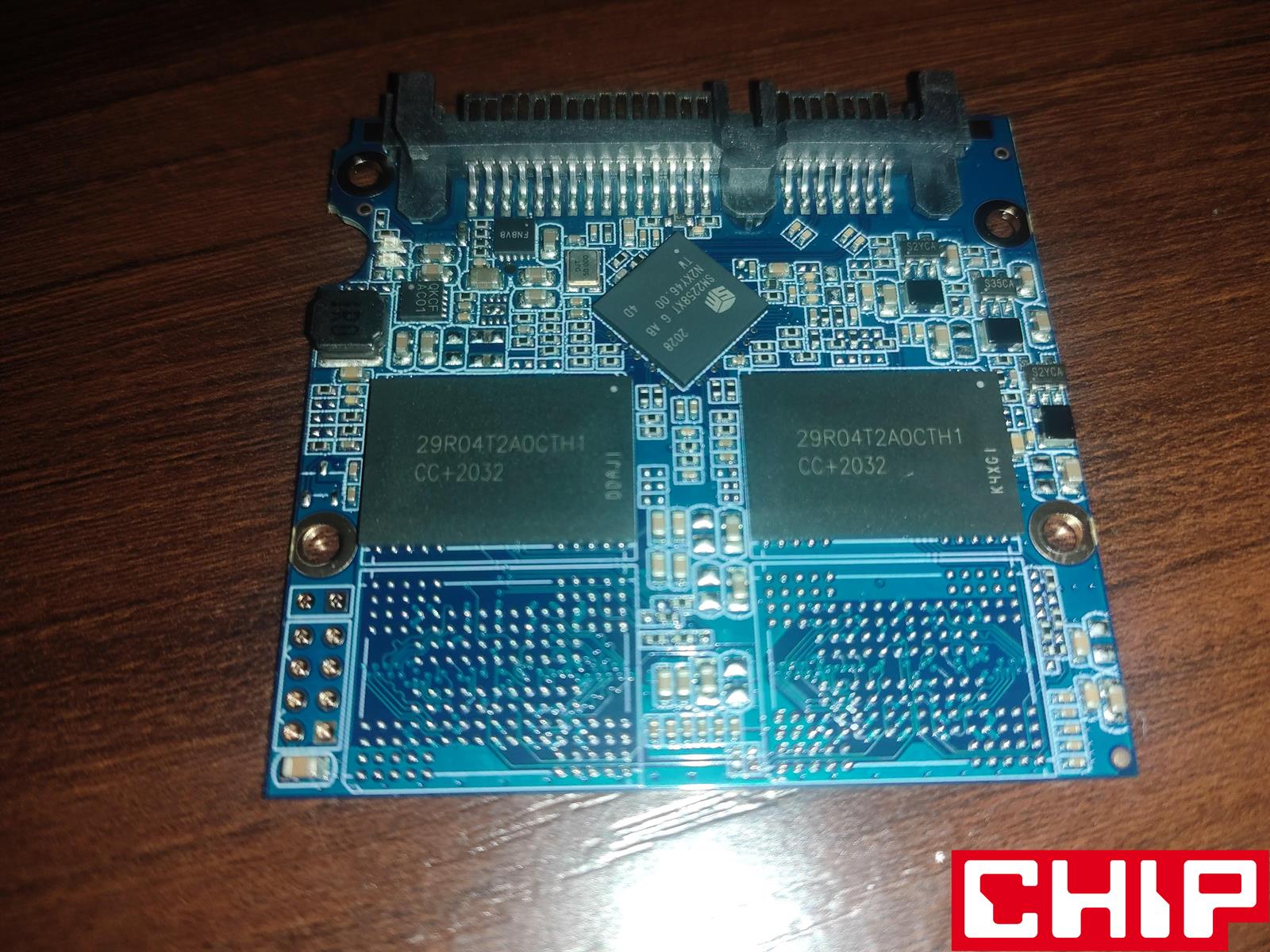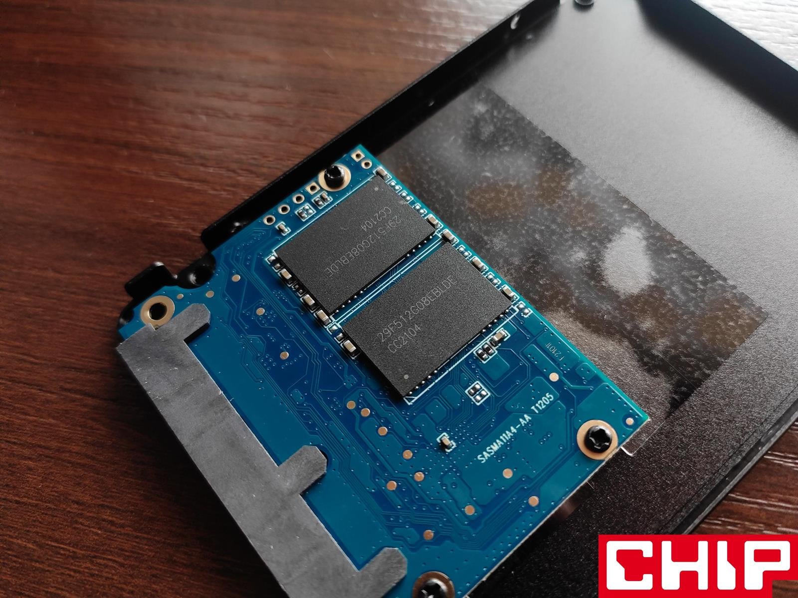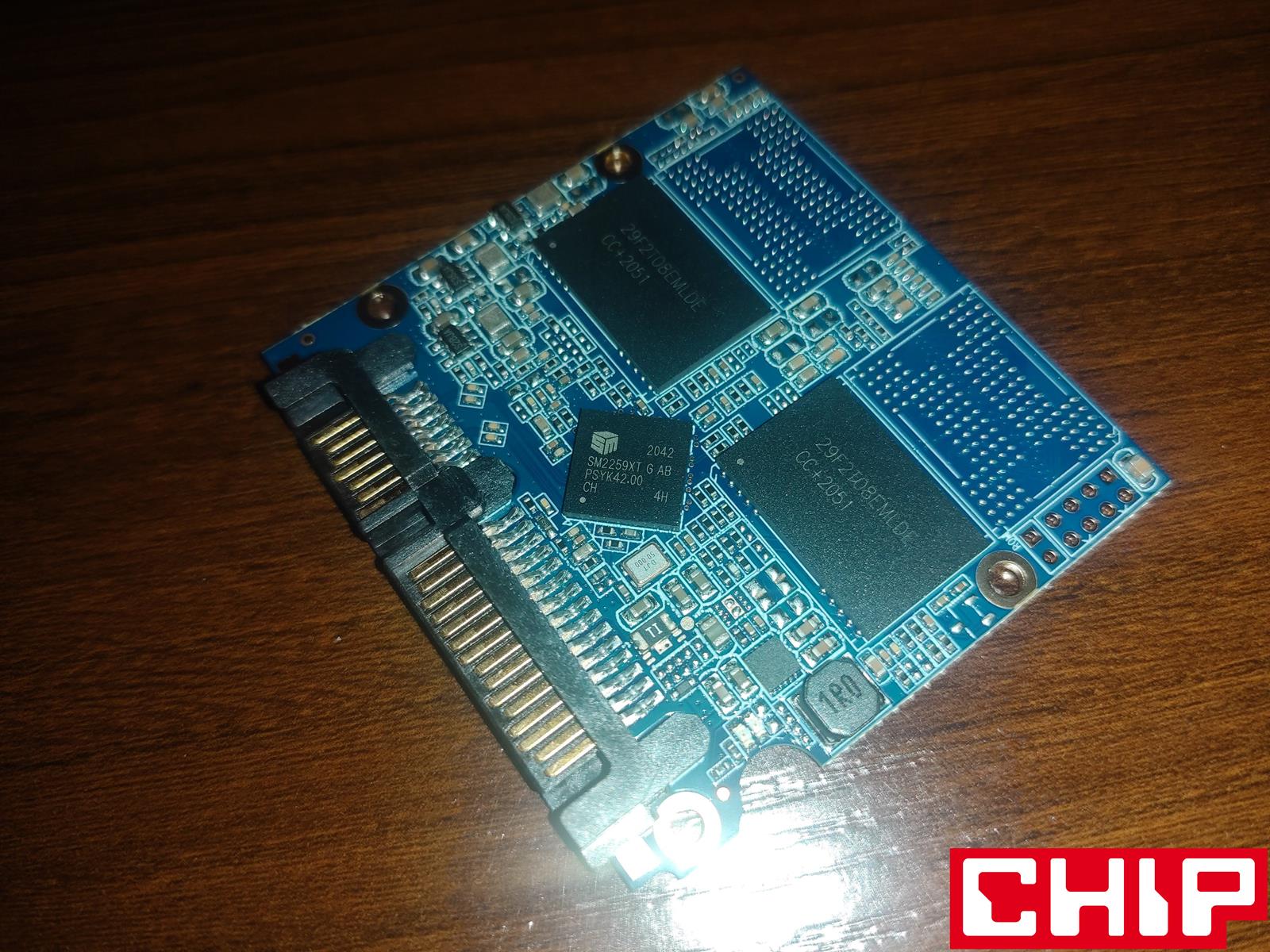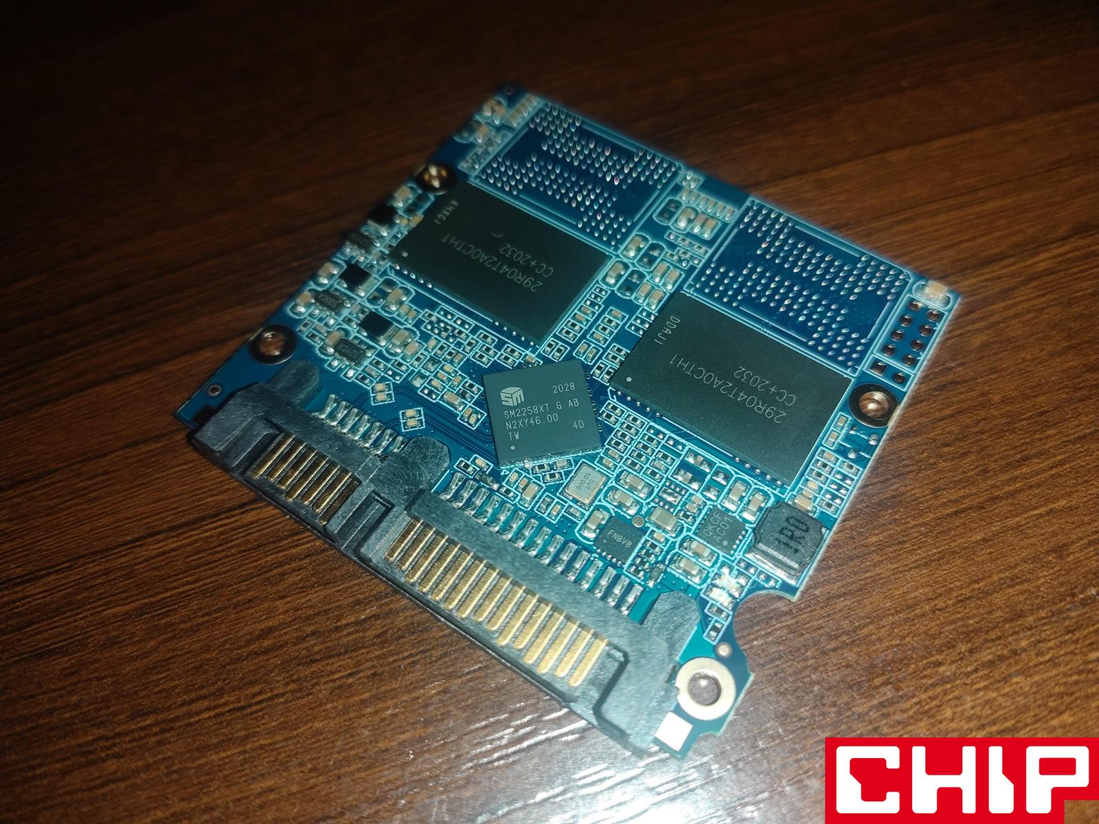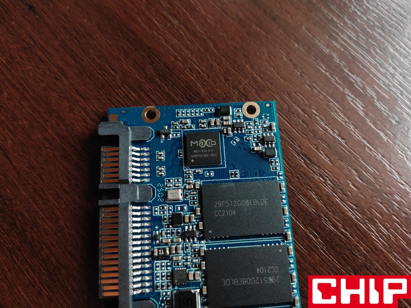 A55 256 GB bazuje na czterech kościach pamięci TLC Microna o kodzie 29F512G08EBLDE CC2104, który nie wskazuje bezpośrednio na dokładne układy NAND, choć odpowiada w części niektórym kościom w konfiguracji 64GX8. To oznacza, że każda z kości oferuje pojemność 64 GB. Oprócz nich na pokładzie znalazł się równie niespotykany kontroler MAXIO MAS1102A-B1C.