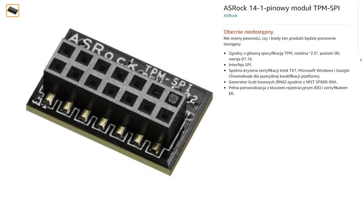 Moduł TPM 2.0 wpina się bezpośrednio w płytę główną, która posiada dedykowane mu złącze, choć zestawy klasy biznesowej mają najczęściej go wbudowanego. Sam posiadam nową płytę główną X570 z górnej półki i choć złącze TPMzgodne z wersją 2.0 jest w niej obecne, tak jego kupno jest obecnie niemożliwe w wielu sklepach. Czy więc powinienem się bać? Wcale nie.