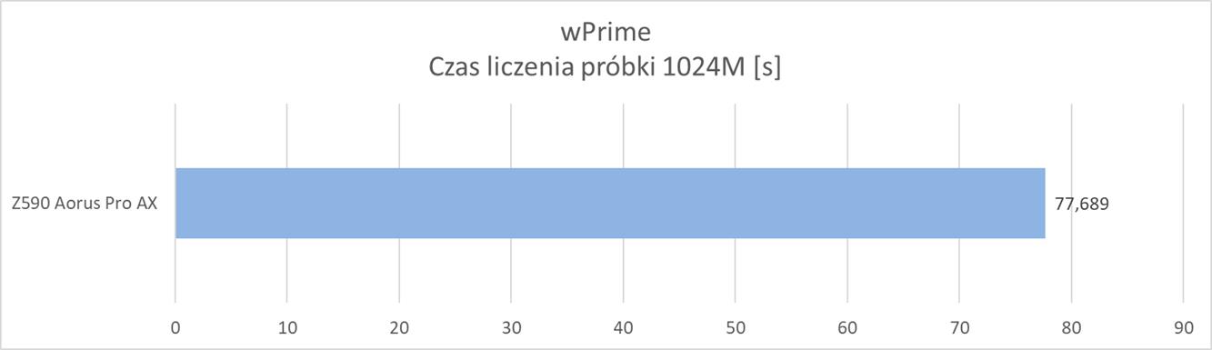 wPrime to kolejny benchmark pozwalający na ocenienie wydajności platformy. Tym razem wykorzystuje on metodę Newtona do znajdowania liczb pierwszych. Tutaj wykorzystałem test 1024M oraz ustawiłem ilość wątków odpowiednią dla wykorzystywanego procesora.