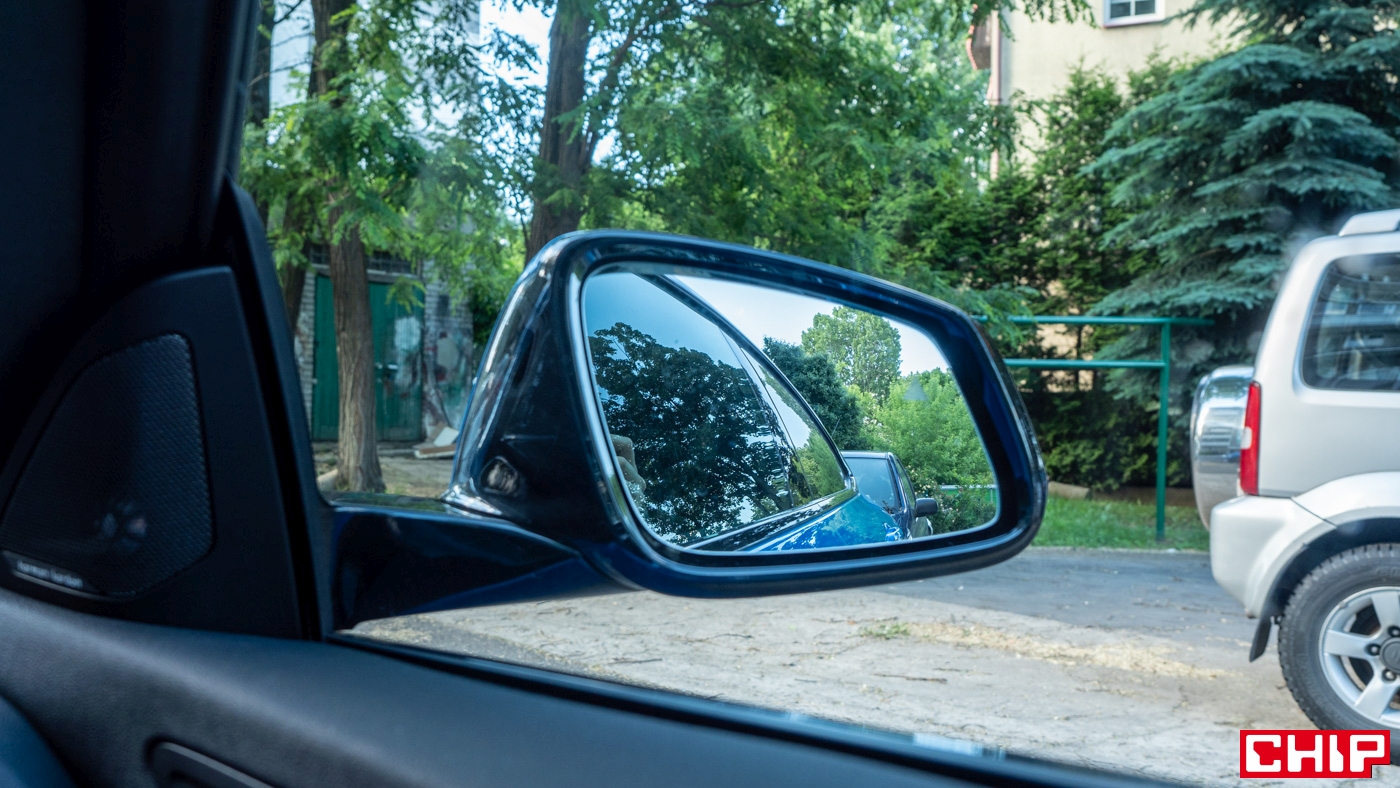 Pomijając kolor, pierwszą rzeczą, która zwraca uwagę, jest brak masywnego grilla charakterystycznego dla nowej generacji rodzeństwa Dwójki. Tutaj mamy do czynienia z niewielką konstrukcją sięgającą tablicy rejestracyjnej. Podejrzewam, że cieszy to cały tłum fanów motoryzacji, którzy do tej pory nie mogą przeżyć faktu, że design grillów większości nowych BMW zmienił się tak drastycznie. Mnie jednak trochę brakowało tego pazura, niemniej jednak przód dwójki prezentuje się zgrabnie. Smukłe światła, odważne wloty powietrza (to nie atrapy oraz zasługa M-pakietu) i zdecydowane linie sprawiają, że autko jest zadziorne i cieszy oczy. Z tyłu jest tak samo dobrze jak z przodu – lekko zadarty tyłek, ładnie wyeksponowane rury wydechowe i maleńki spojler. Koniecznie należy też wspomnieć o bezramkowych drzwiach, które wyglądają fenomenalnie! Może zabrzmi to dziwnie, ale ten smaczek jest moim ulubionym elementem zewnętrznym auta.