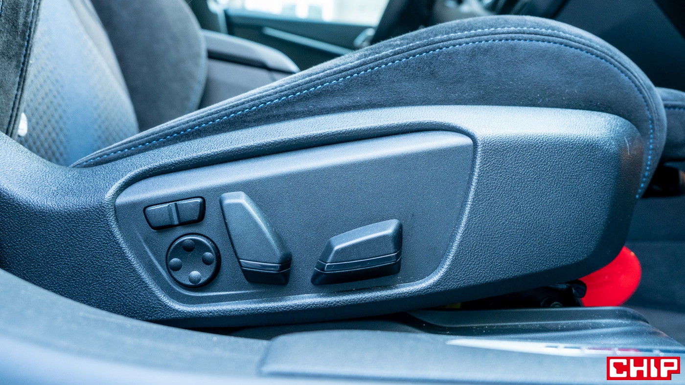 Każde BMW jakie było dotychczas testowane przez obie nasze redakcje, było wyposażone w skórzaną tapicerkę, więc widok czegoś innego był miłą odmianą. W tym konkretnym modelu auto obszyte zostało tkaniną trigon i alkantarą. Upraszczając te dwa pojęcia: tkanina w geometryczne wzory i materiał przypominający w dotyku zamsz. Wygląda to prosto i elegancko, do jakości wykonania nie można się przyczepić, a podczas upałów fotele obszyte tymi materiałami nie parzą w tyłek tak mocno jak skórzane. Skoro jesteśmy przy temacie foteli, na pochwałę zasługuje szeroki zakres ich regulacji. Możemy dowolnie ustawić nie tylko ich wysokość czy długość siedziska, ale również szerokość oparcia. Każdy kierowca o niezbyt postawnej budowie doceni tę funkcjonalność, w szczególności przy pokonywaniu ostrych zakrętów. Fotele porządnie trzymają ciało, oszczędzając nam odczuwania na własnej skórze nadmiernych przeciążeń.