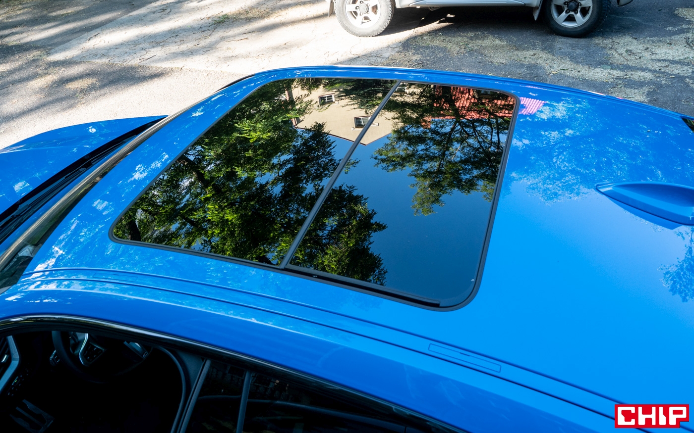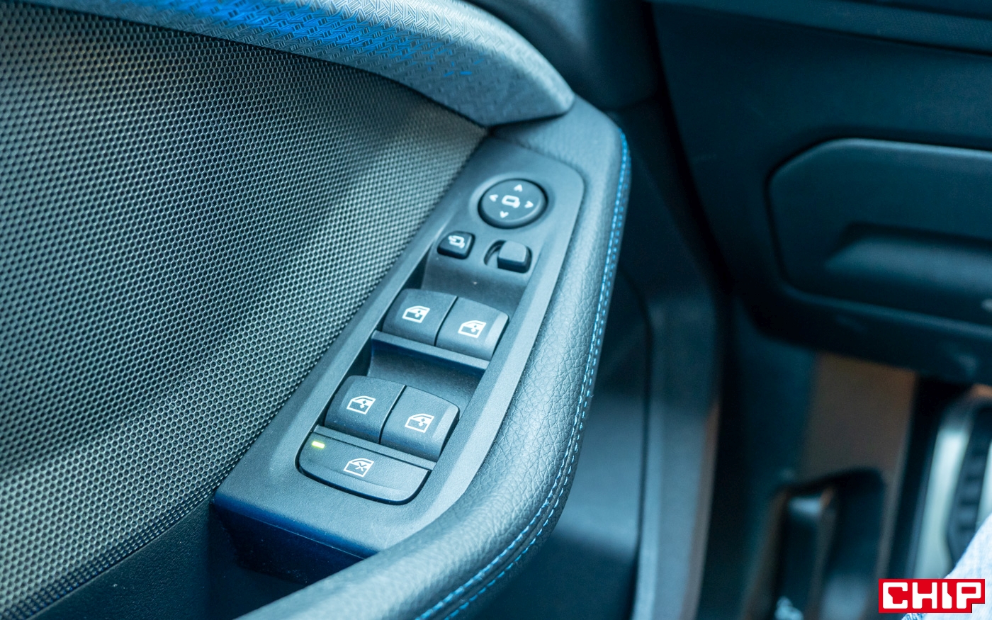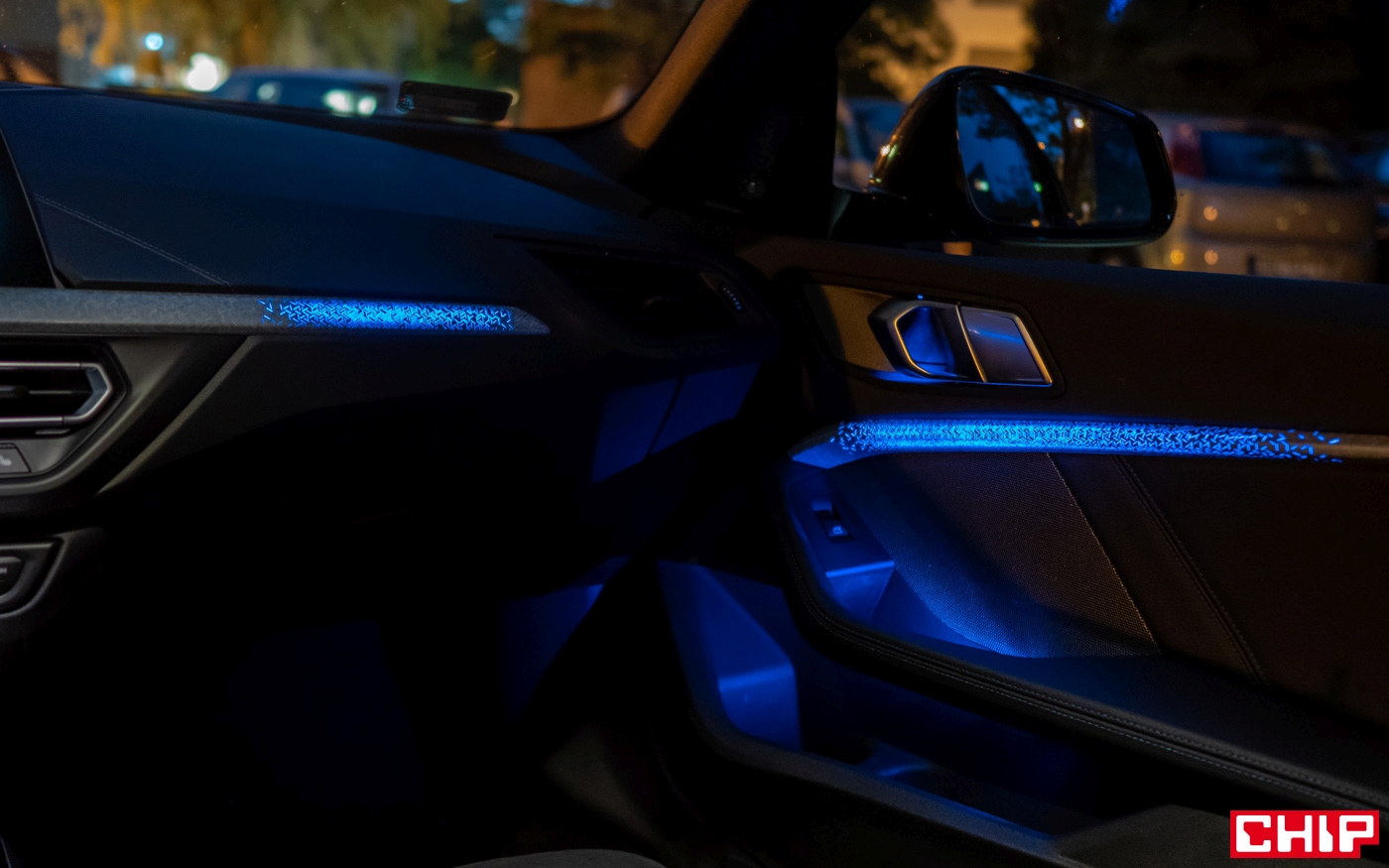 Kolejnym przyjemnym akcentem jest podświetlenie wnętrza. Na desce rozdzielczej i drzwiach znajdziemy podświetlane listwy opatrzone trójkątnymi wzorami. Możemy dostosować do swoich preferencji zarówno kolor podświetlenia, jak i jego intensywność. Listwy robią świetną robotę, nadając wnętrzu klimat bez rozpraszania uwagi kierowcy. W połączeniu z ogromnym panoramicznym dachem jazda w nocy jest czystą przyjemnością.
