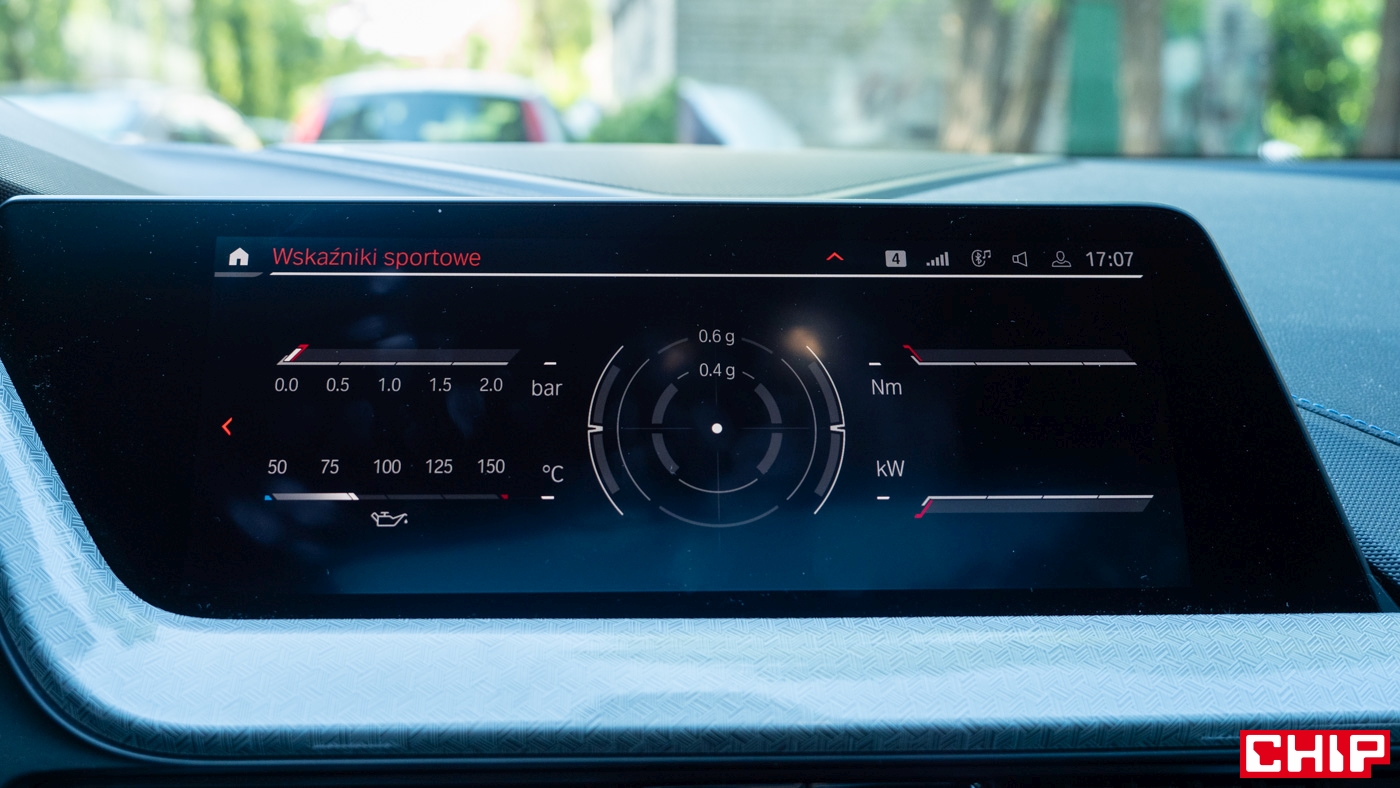 Poza tym mankamentem system BMW iDrive to nadal wzór wygody i ergonomii. Oferuje bardzo łatwy dostęp do wszystkich funkcji, nie przytłacza ilością dostępnych opcji. Podobnie jak całe wnętrze — jest dla kierowcy. Dosłownie. A wspomnianą nawigację warto zastąpić choćby przez Android Auto. Co ważne, jest to na tyle nowe auto, że do parowania smartfonu nie potrzebujemy kabla USB.