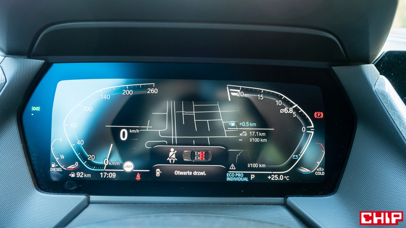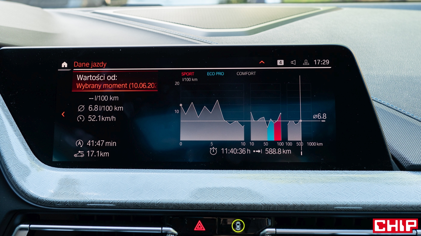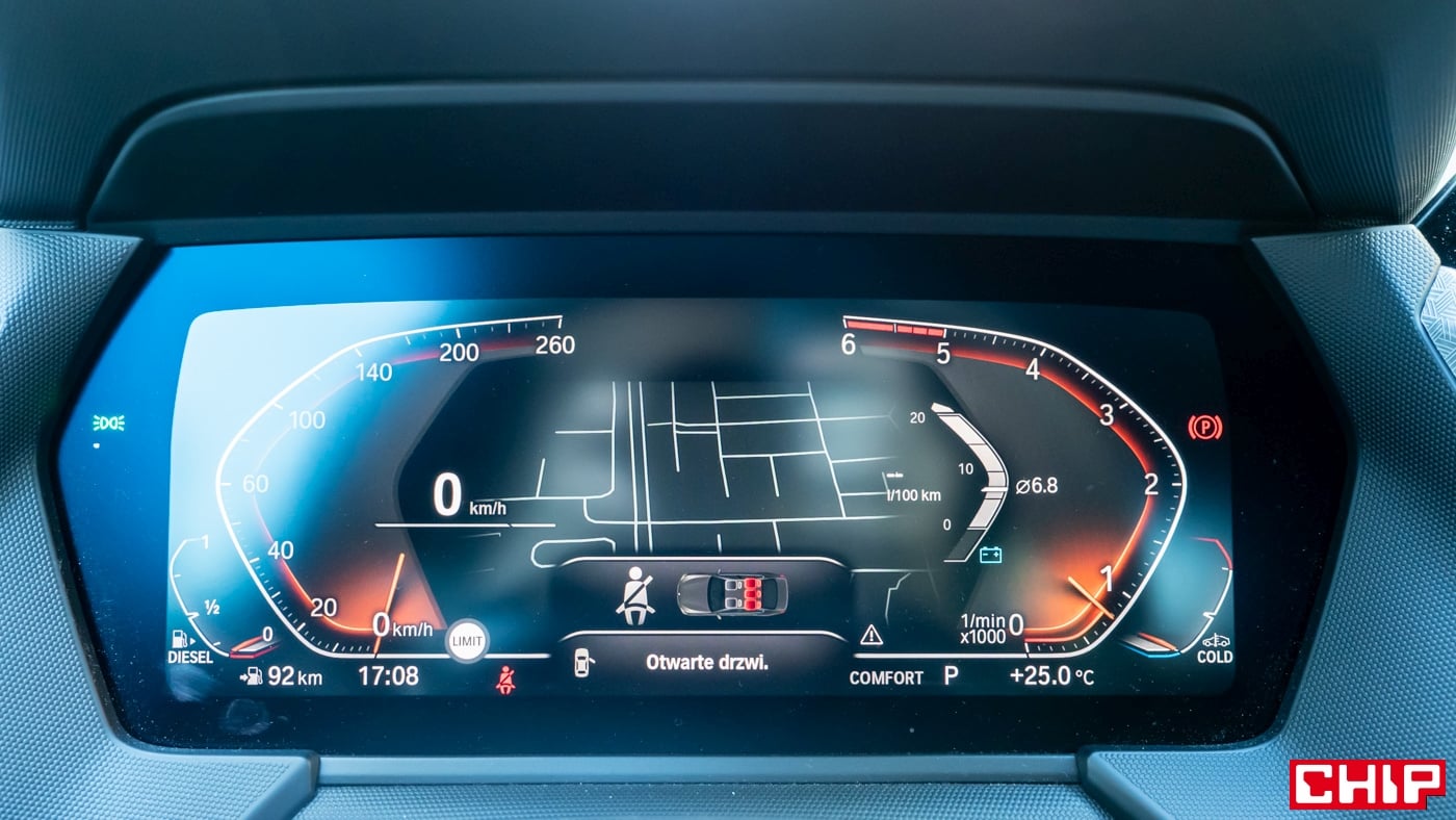 Kiedy usiadłam za kierownicą, natychmiast rozpoznałam rozkład wnętrza i interfejs, tak dobrze znane mi z innych testowanych modeli BMW. Będę się powtarzać, ale już od pierwszych chwil czuć, że niemiecki producent za priorytet stawia sobie komfort jazdy kierowcy. Duży, czytelny head-up, wielofunkcyjna kierownica i najważniejsze funkcje takie jak tryby jazdy dostępne dzięki dedykowanym przyciskom sprawiają, że wszystko co potrzebne, mamy dosłownie pod ręką. Jednocześnie Niemcy nie szaleli z eksponowaniem wszystkich bajerów tego samochodu, ukrywając w dotykowym monitorze funkcje, z których korzysta się rzadziej. Ekran o przekątnej 10,25 cala zapewnia czytelność, a prosty, intuicyjny interfejs będzie nas prowadził za rękę i nie pozwoli się zgubić podczas wyszukiwania interesujących nas funkcji.