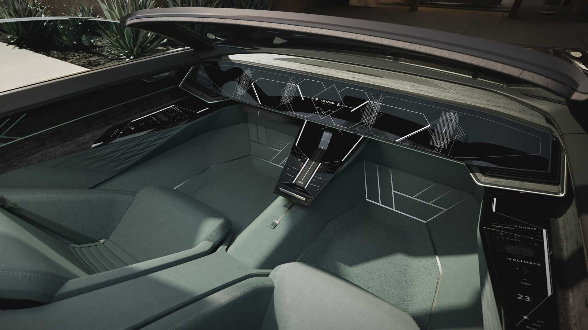Za naciśnięciem jednego przycisku Audi Skysphere zmienia się między trybem GT i Sport, a że teoretycznie model wspiera Poziom 4 autonomii, to w trybie nastawionym na długą podróż (GT) kierownica i pedały chowają się pod deską rozdzielczą, tworząc otwarty i przestronny kokpit dla dwójki pasażerów. W obu trybach koncept Skysphere sprawia cudne wrażenie, zachwycając swoim futuryzmem, łączącym zarówno ostre, jak i obłe kąty nadwozia, nastawione na możliwie najniższy opór aerodynamiczny, którego poprawiają też felgi.